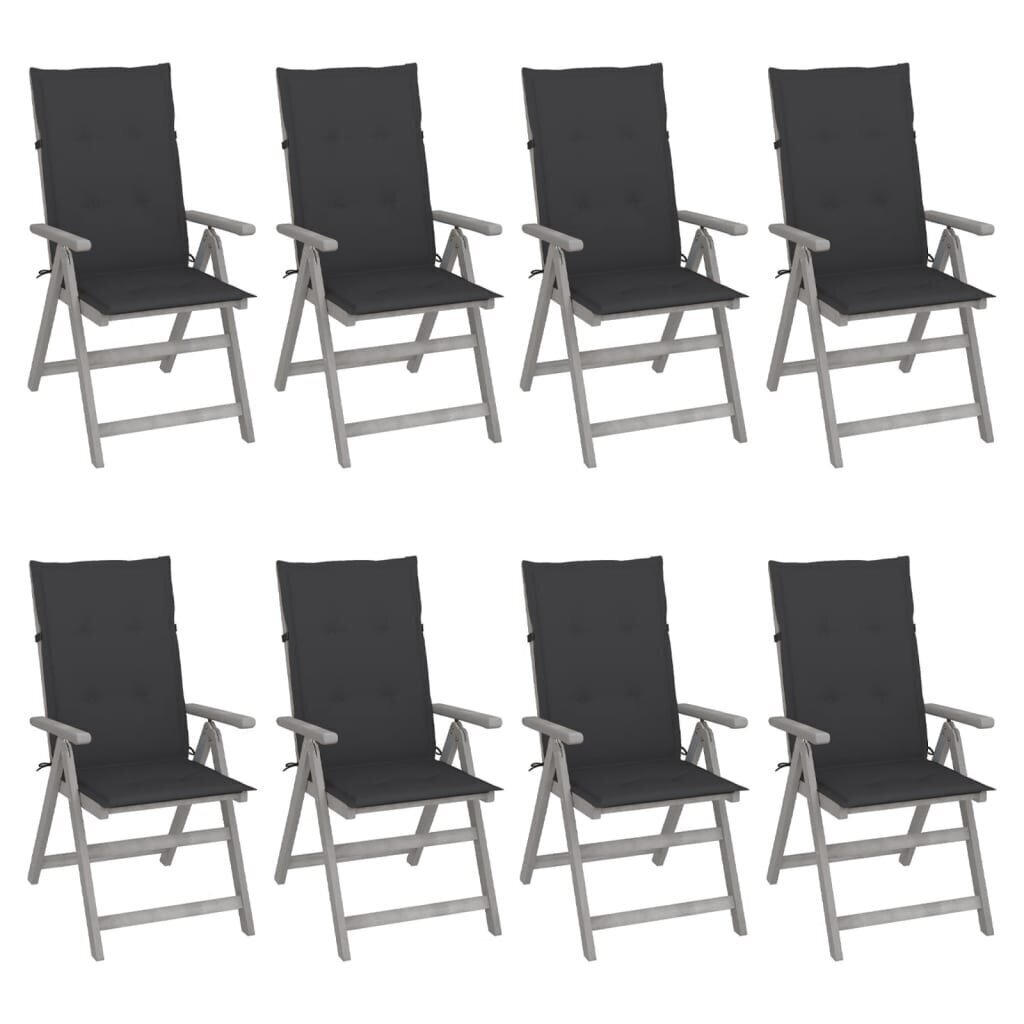 Atlošiamos sodo kėdės su pagalvėlėmis, 8 vnt, pilkos Medžio masyvas