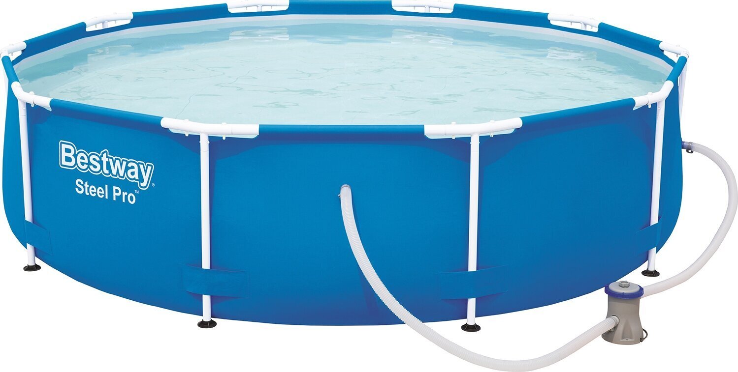- Bestway Steel Pro Baseinas Yra Patogus ir Pasiūlymas už Priimtiną Kainą: Šis apvalus, 305 cm skersmens ir 76 cm aukščio rėminis baseinas su vandens filtru yra lengvai surenkamas ir aprūpintas patvariu PVC ir poliesterio sienelėmis.