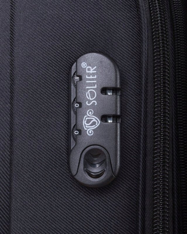 Solier XL didelis kelioninis lagaminas buvo sukurtas galvojant apie kelionių patogumą ir saugumą. Pagaminta iš lengvos, atsparios ir labai patvarios CODURA medžiagos. Modernus modelis su dviejų lygių teleskopine rankena, duraliuminiu įmontuotu rėmu ir keturiais ratais, kurie užtikrina stabilumą ir lengvumą vairuojant bet kuria kryptimi. Turi kodinį užraktą, kuris užtikrina bagažo saugumą. Vidus ryškios firminės spalvos, užtrauktuku padalytas į dvi funkcines kameras. Lagamino viduje yra tamsus pamušalas su įmontuotu užtrauktuku. Viduje yra papildoma tinklinė kišenė smulkesniems aksesuarams. Puikiai tinka visoms kelionėms, atostogoms ar verslo kelionėms.