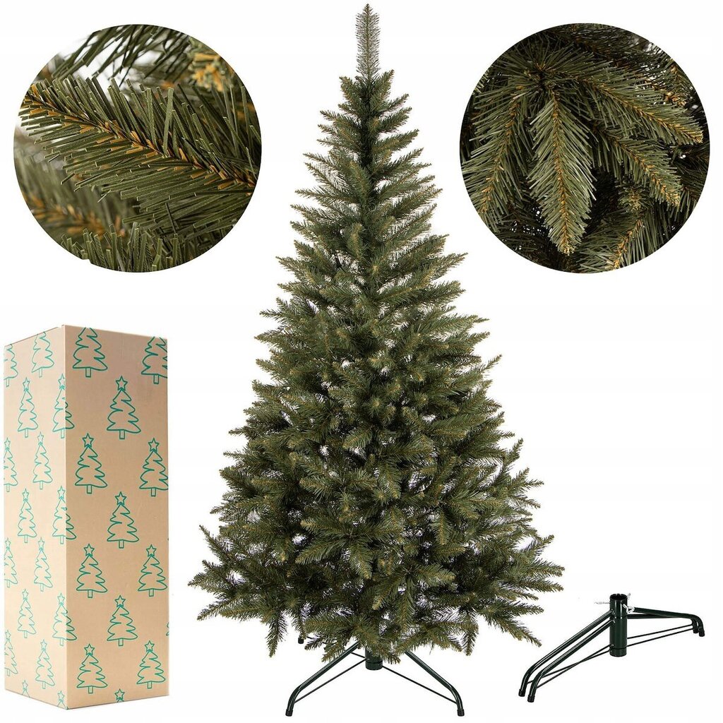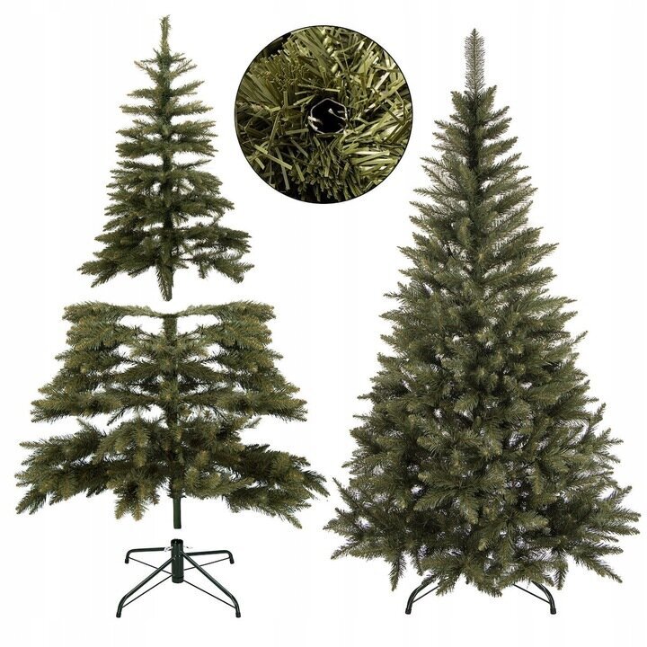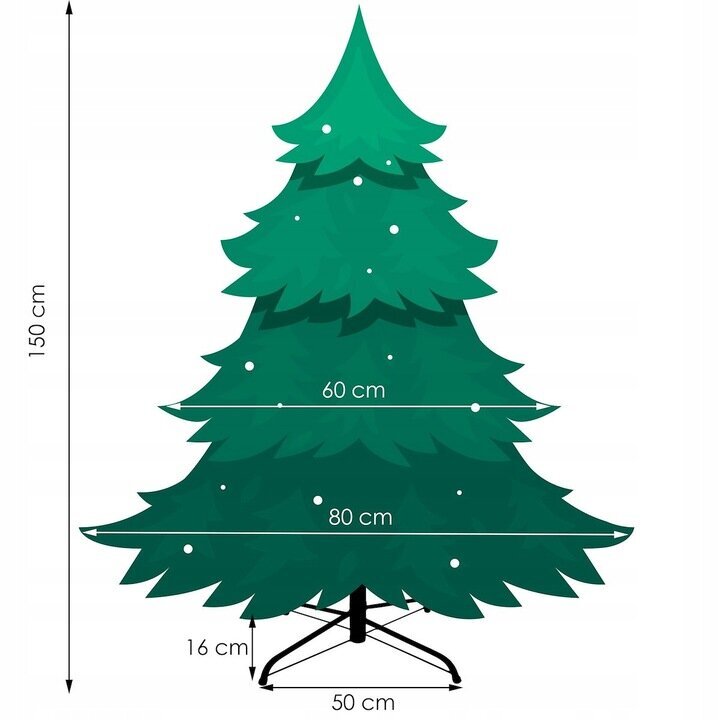 - Techninės eglutės specifikacijos: Eglutė yra 150 cm aukščio, turi apie 80 cm tarpatramį ir 13+ viršūnę, su 40 šakų ir 312 šakelių, pagaminta iš PVC su natūralios žalios spalvos šakomis.