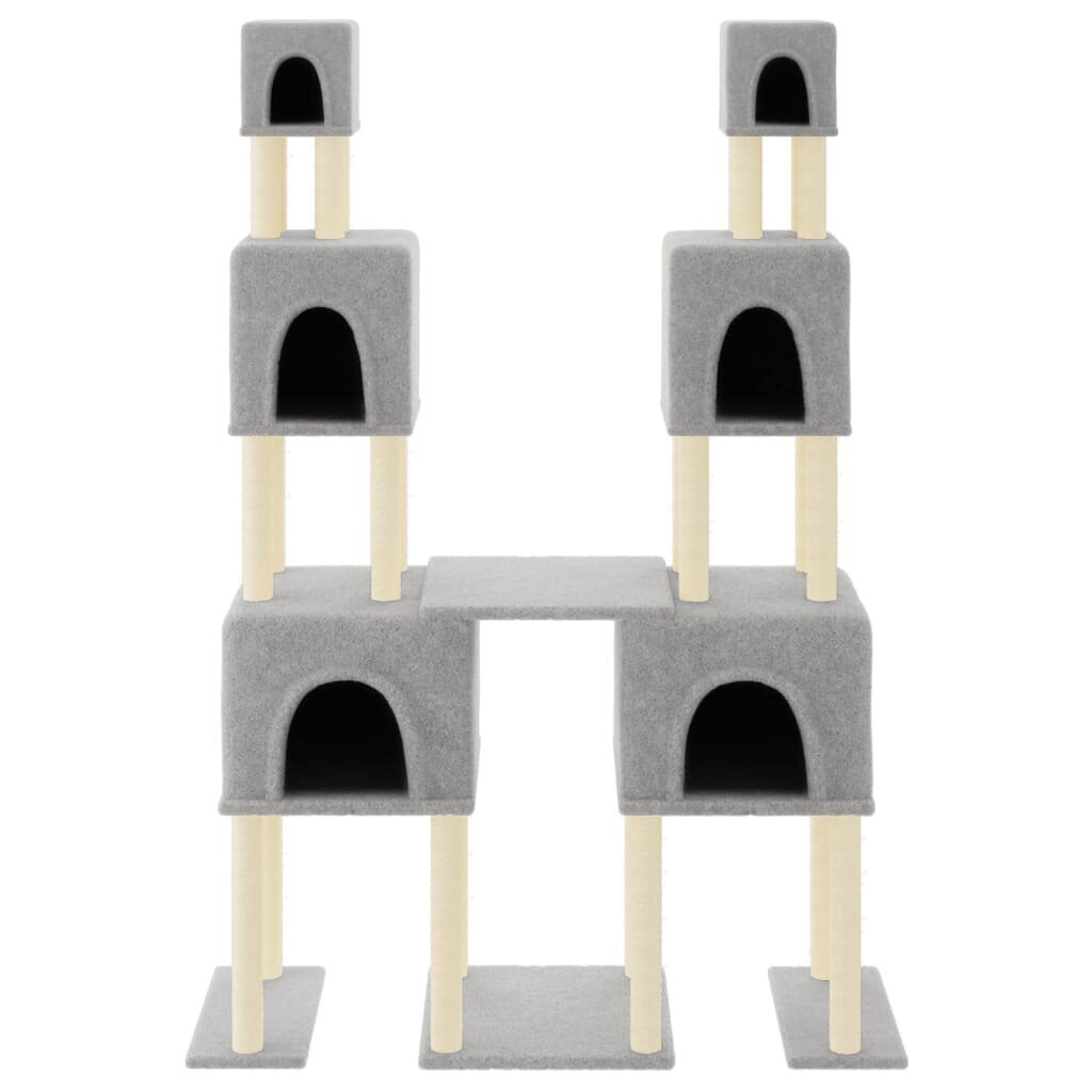 - Viskas viename katės draskyklė: Šis daugiaaukštis baldas pasižymi platformomis ir šešiomis nameliais, siūlydamas katėms vietų laipioti, slėptis ir pailsėti.