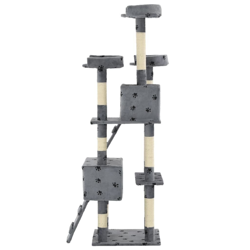Su įvairiomis funkcijomis pasižyminčia draskykle katėms, leiskite savo keturkojams pasimėgauti prabanga! Šis daugiaaukštis kačių žaidimų namelis pasižymi tvirtu, pliušu dengtu rėmu, tad puikiai tiks katėms draskyti, laipioti, tupėti, slėptis bei ilsėtis. Jūsų pūkuoti draugai savo nagus gali pasigaląsti į draskyklės stulpus apvyniotus sizalio virve – tai bus saugus sprendimas neribojant jų instinkto draskyti. Jiems taip pat patiks vytis vienas kitą šokinėjant aukštyn bei žemyn ant šios žaismingos draskyklės. Kai jūsų mažieji draugai nebenorės žaisti, jie galės ilsėtis ant aukštesniųjų platformų – taip viską geriau matydami. Jie taip pat galės pasislėpti jaukiuose nameliuose ir nusnūsti. Su visomis šiomis smagiomis funckijomis, šis kačių žaidimų namelis taps jūsų pūkuotų draugų mėgtamiausia laiko leidimo vieta! Draskyklę katėms yra lengva surinkti.