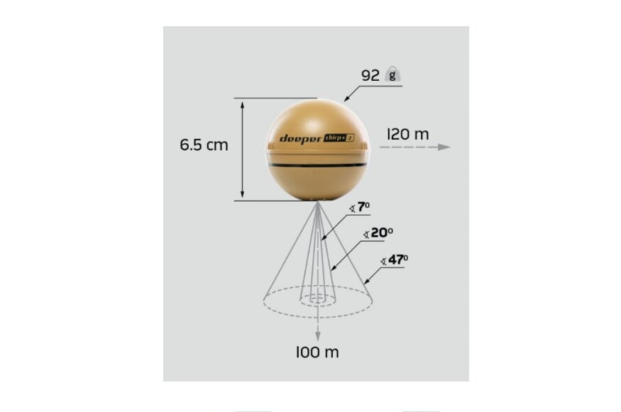 Deeper Chirp+2 yra pažangus sonaras, kuris naudoja CHIRP technologiją, siunčiančią nuolatinį dažnių srautą nuo žemų iki aukštų, todėl suteikia aiškesnį ir didesnės skiriamosios gebos vaizdą nei tradiciniai sonarai. Šis įrenginys gali tiksliai nustatyti žuvų koncentraciją ir pateikti detalius povandeninių objektų vaizdus.