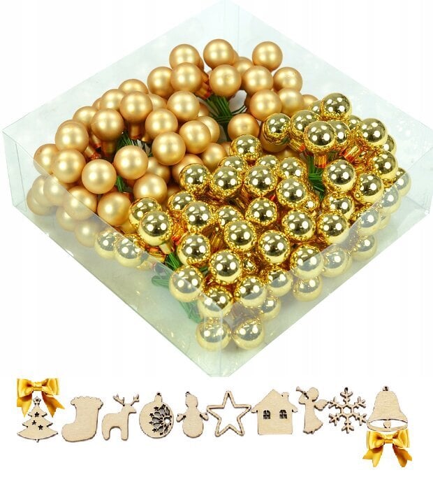 - Kalėdiniai stiklo niekučiai žaislų kolekcijoje: Komplekte yra 144 aukso apdailos stiklo blizgučiai, naudojami kaip kalėdinės dekoracijos, dovanos ar puošmenoms.