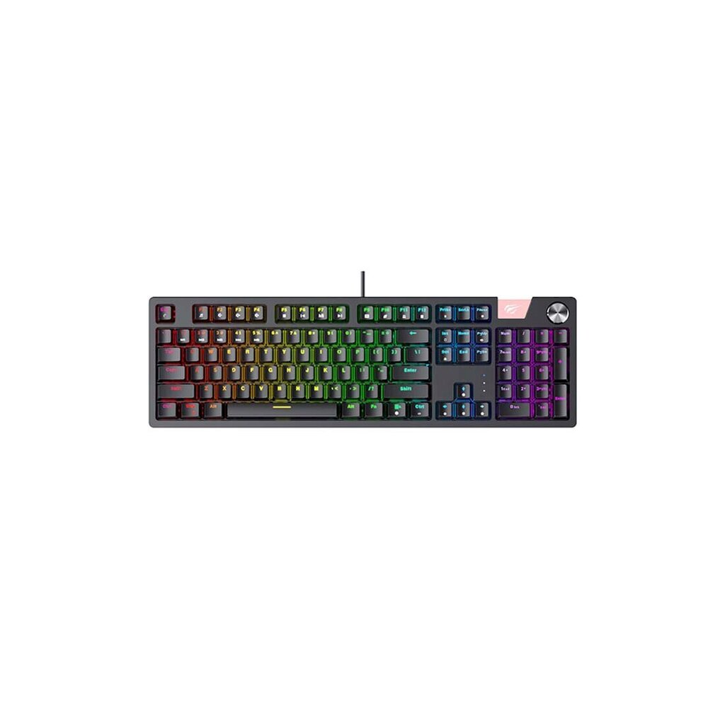 • Havit KB862L Mechanical Gaming Keyboard Features: The Havit KB862L offers 104 keys, RGB backlighting, and blue switches that ensure smooth and reliable performance suitable for gaming.