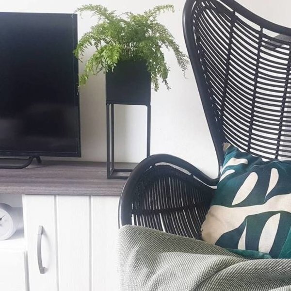 „Home & Styling“ rafinuotas gėlių vazonas ant tvirto, bei dailaus stovo, pagamintas iš juodo lakuoto metalo. Jame gali būti pasodinti natūralūs augalai, taip pat dirbtiniai, kad pagražintų jūsų interjerą.