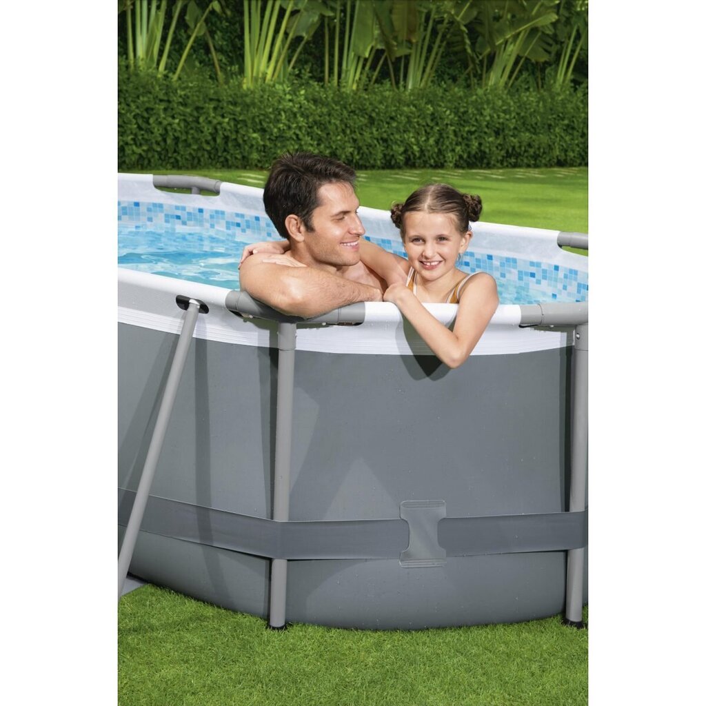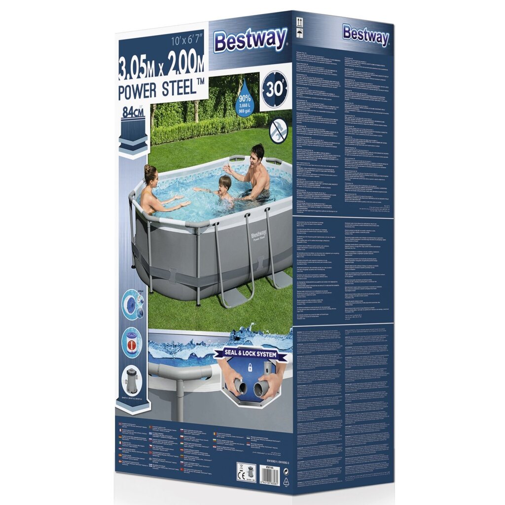 Ovalios formos karkasinis baseinas Bestway® Power Steel™ itin lengvai surenkamas ir pastatomas sode ar kieme. Patvarus, korozijai atsparus plieninis rėmas su Seal & Lock System™ sistema, užtikrinančia tvirtą vamzdelių sujungimą. Beseino medžiaga Tritech™ pagaminta iš patvarios, pradūrimams atsparios medžiagos.