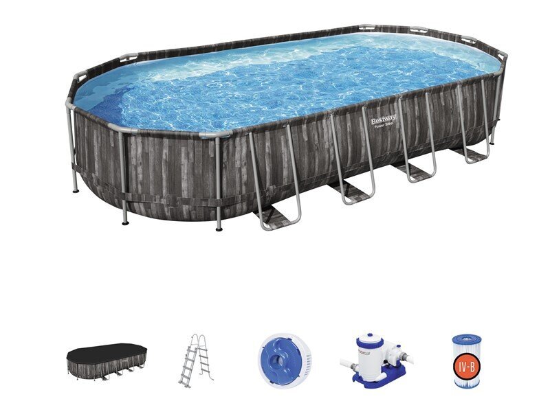 Ovalios formos karkasinis baseinas Bestway® Power Steel™ itin lengvai surenkamas ir pastatomas sode ar kieme. Patvarus, korozijai atsparus plieninis rėmas su Seal & Lock System™ sistema, užtikrinančia tvirtą vamzdelių sujungimą. Beseino medžiaga Tritech™ pagaminta iš patvarios, pradūrimams atsparios medžiagos.