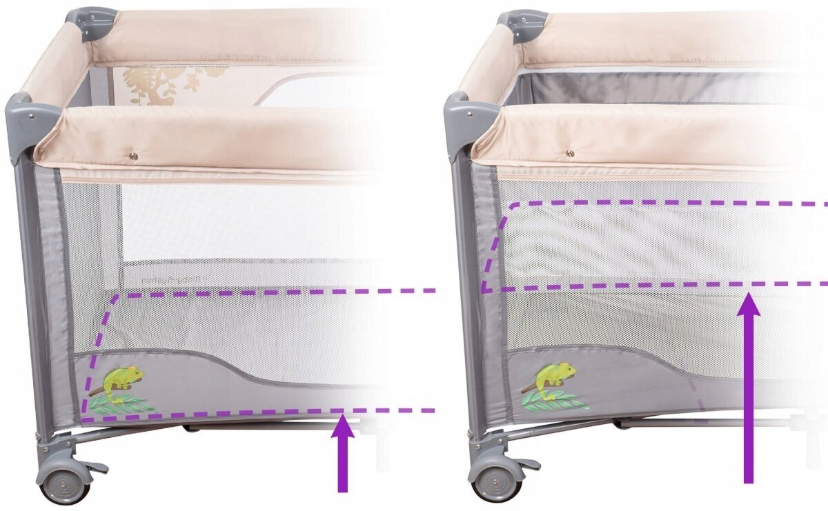 - Pilnai sulankstoma lova + transportavimo krepšys