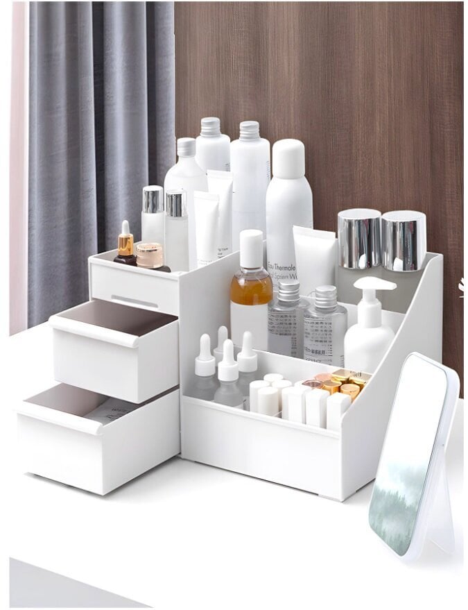 - Dėžutė su stalčiais įvairioms kosmetikos priemonėms susidėti.