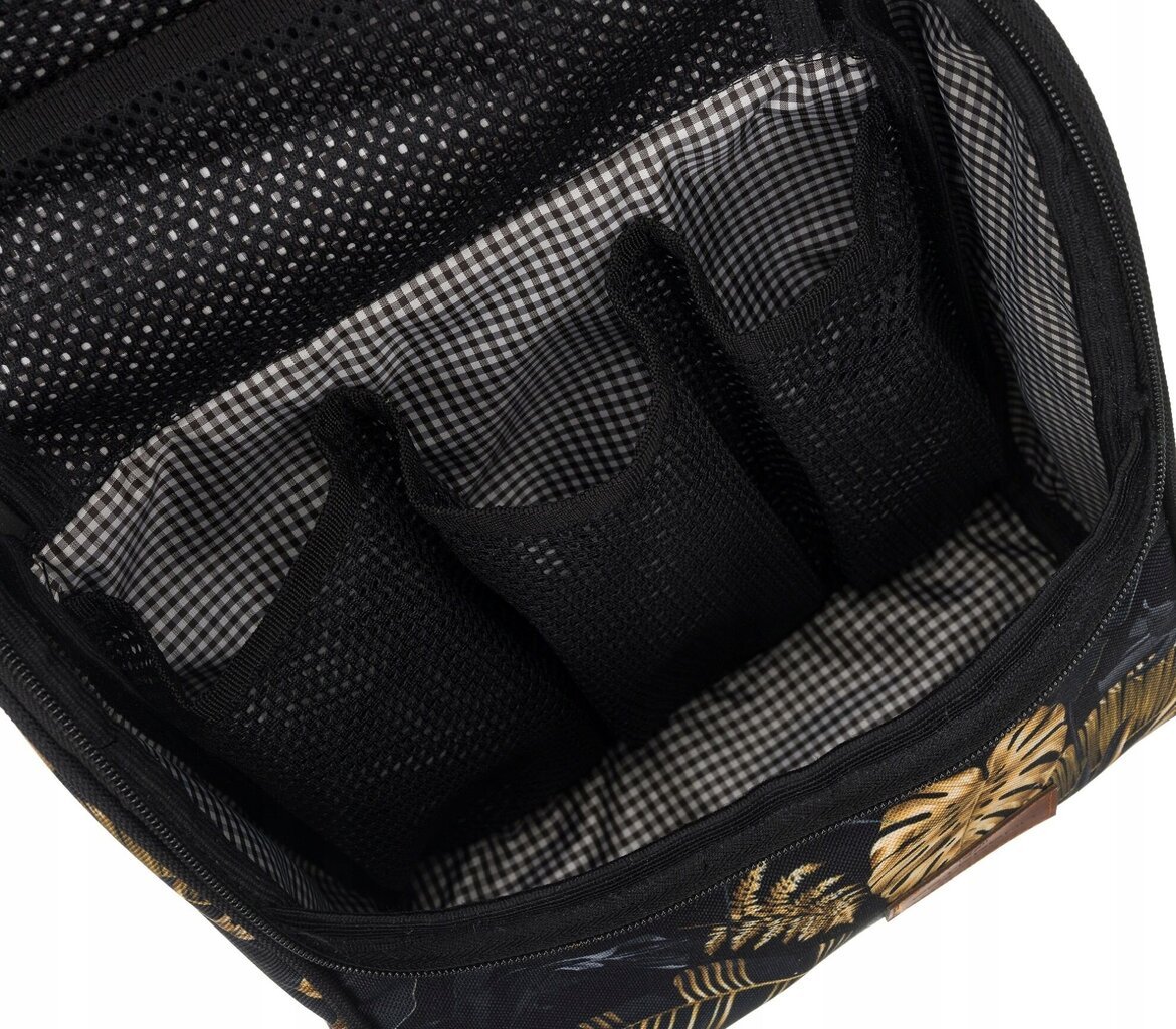 - Kosmetikos maišelio viduje yra atviras skyrius, kuriame bus saugoma smulki kosmetika ir 3️ nedideli, atskiri skyreliai skystai kosmetikai + 2️ užsegamos kišenės.