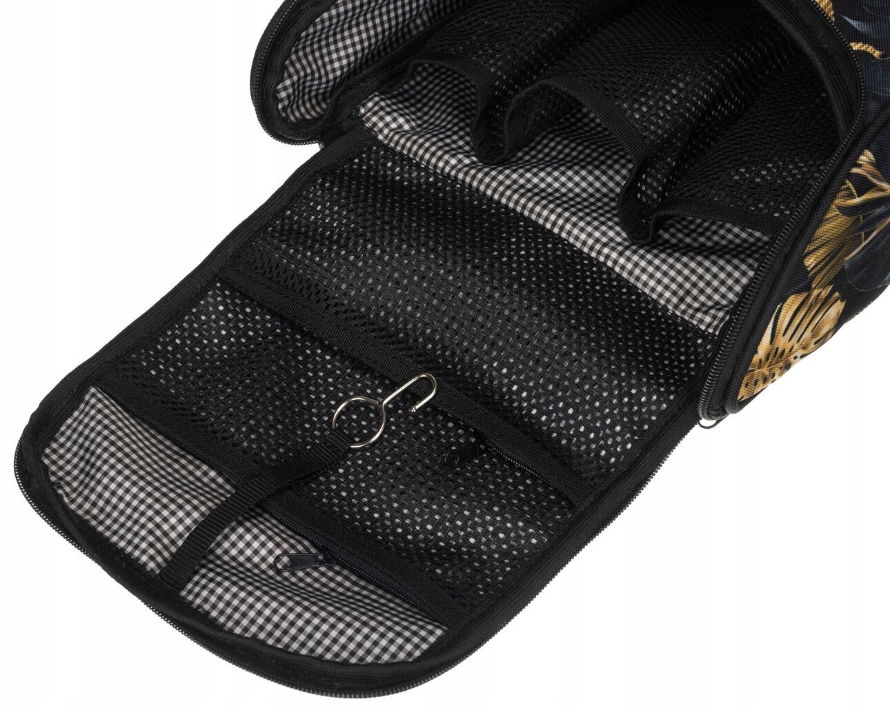 - Patogi kelioninė kosmetinė: Ši kosmetinė yra su dvigubu užtrauktuku, rankena ir kabliu, kuris leidžia ją pakabinti, užtikrinant patogų ir saugų kosmetikos laikymą bei pasiekiamumą.