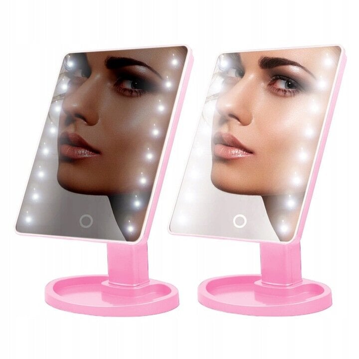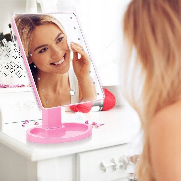 Kosmetinis veidrodis su padidinimu ir 16 LED diodų, rožinis