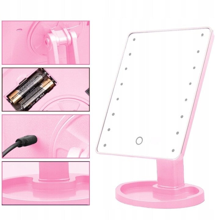 ILUMINATED COSMETIC MIRROR 16 LED MAKEUP Gamintojo kodas STANDING FOR MAKEUP, USB BATTERY MIRROR
