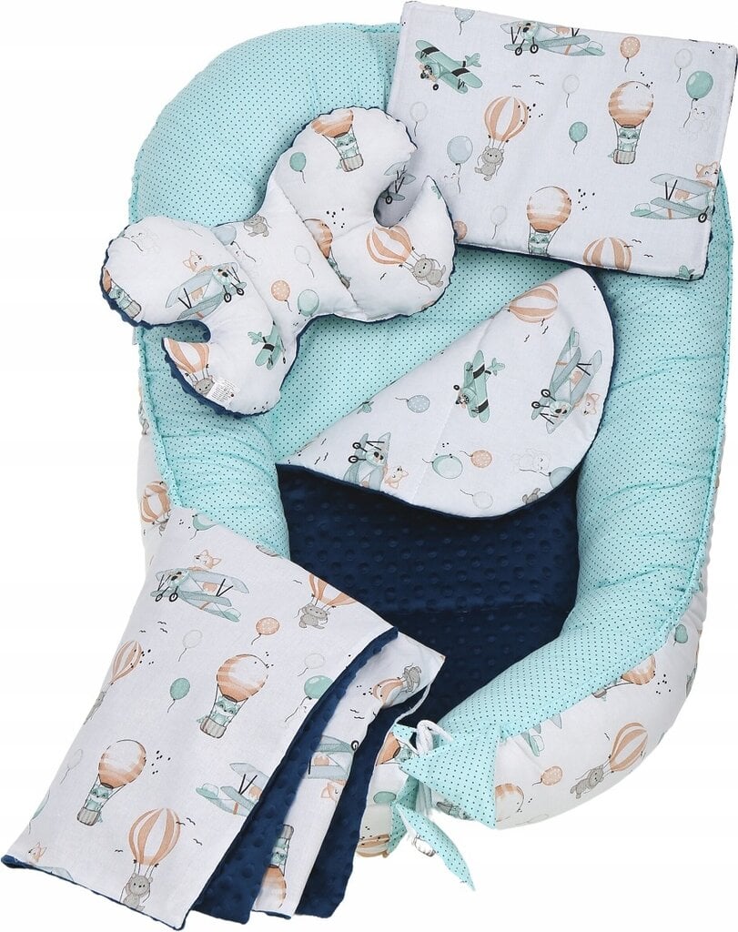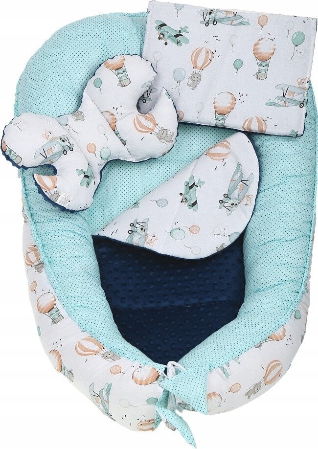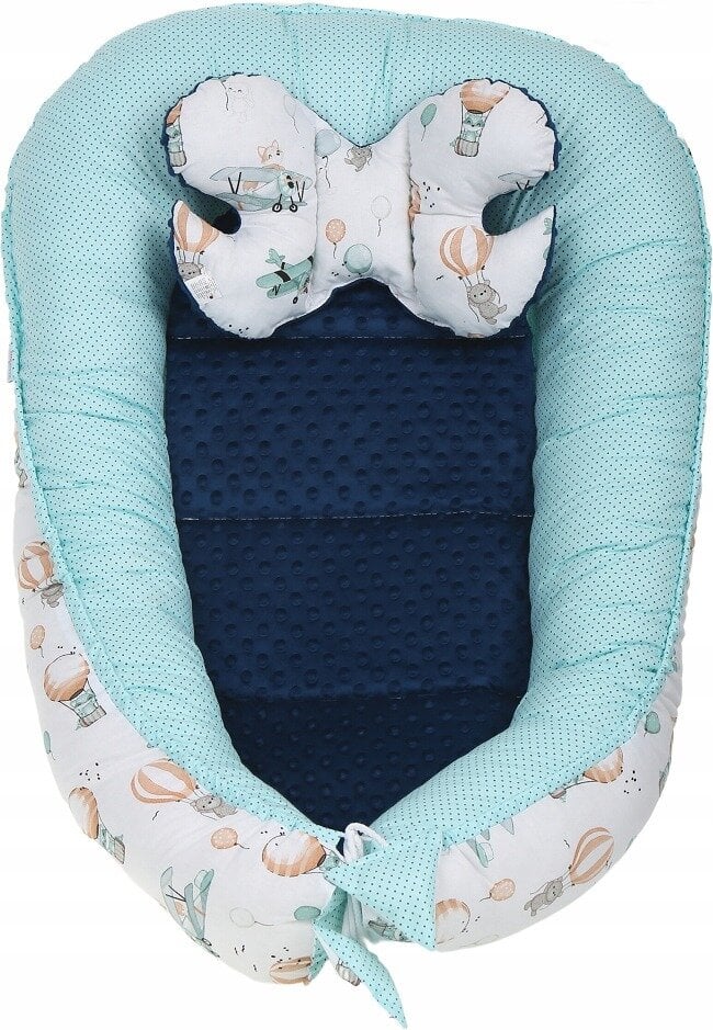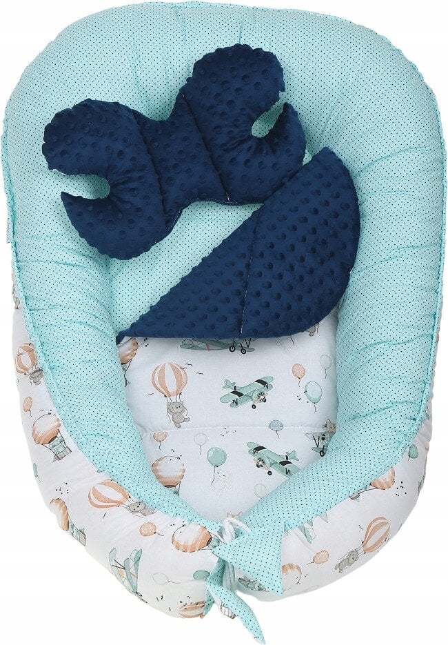 Komplekte esanti pagalvėlė yra optimalaus dydžio kūdikiams, naujagimiams ir vyresniems vaikams. Patogūs ir saugūs.