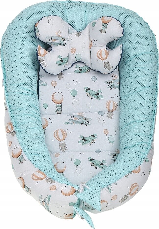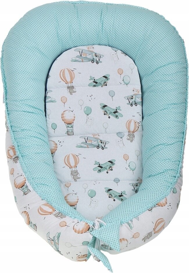 dvipusis kokonas kūdikiui, kurio išoriniai matmenys 110 x 65 x 14 cm