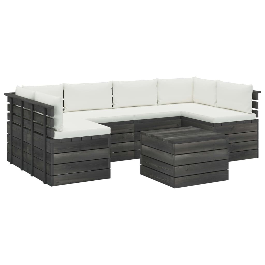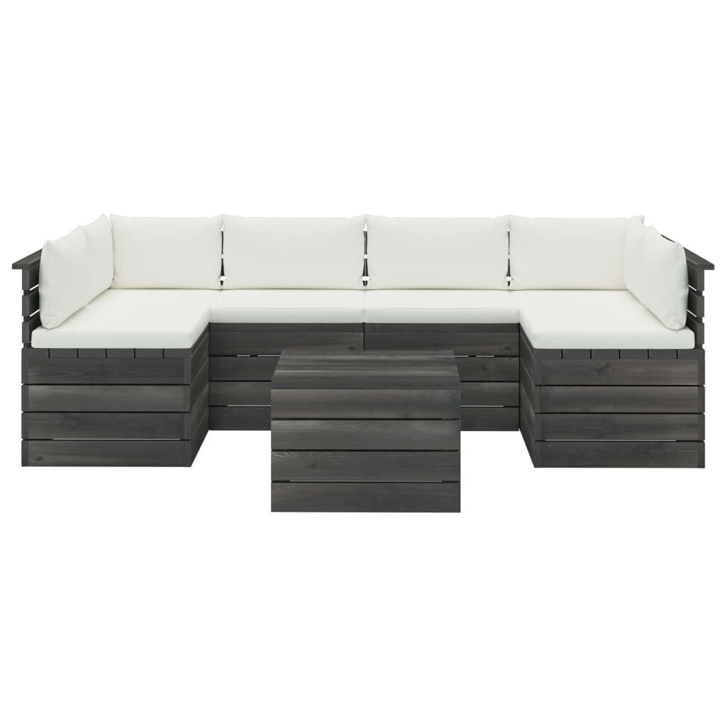 Lauko baldų komplektas iš palečių su pagalvėlėmis, 7 dalių, pilkas Medžio masyvas