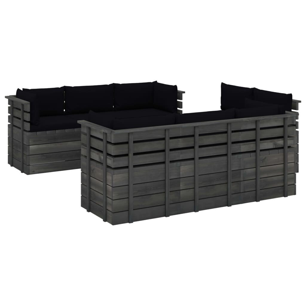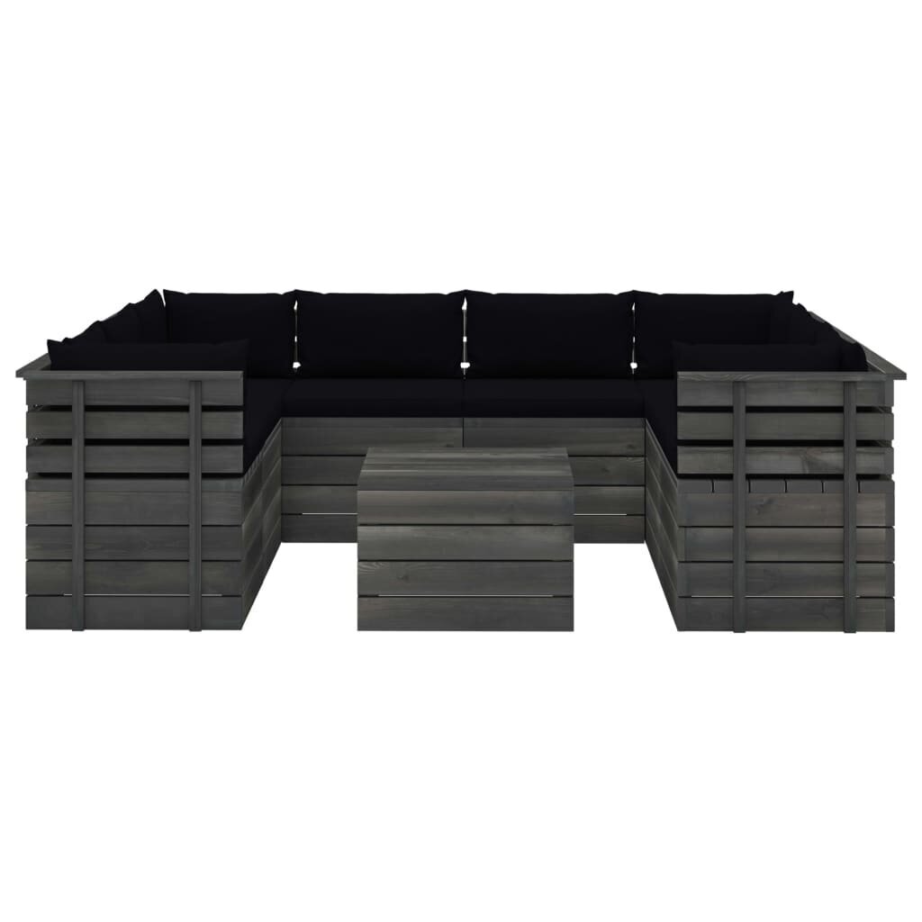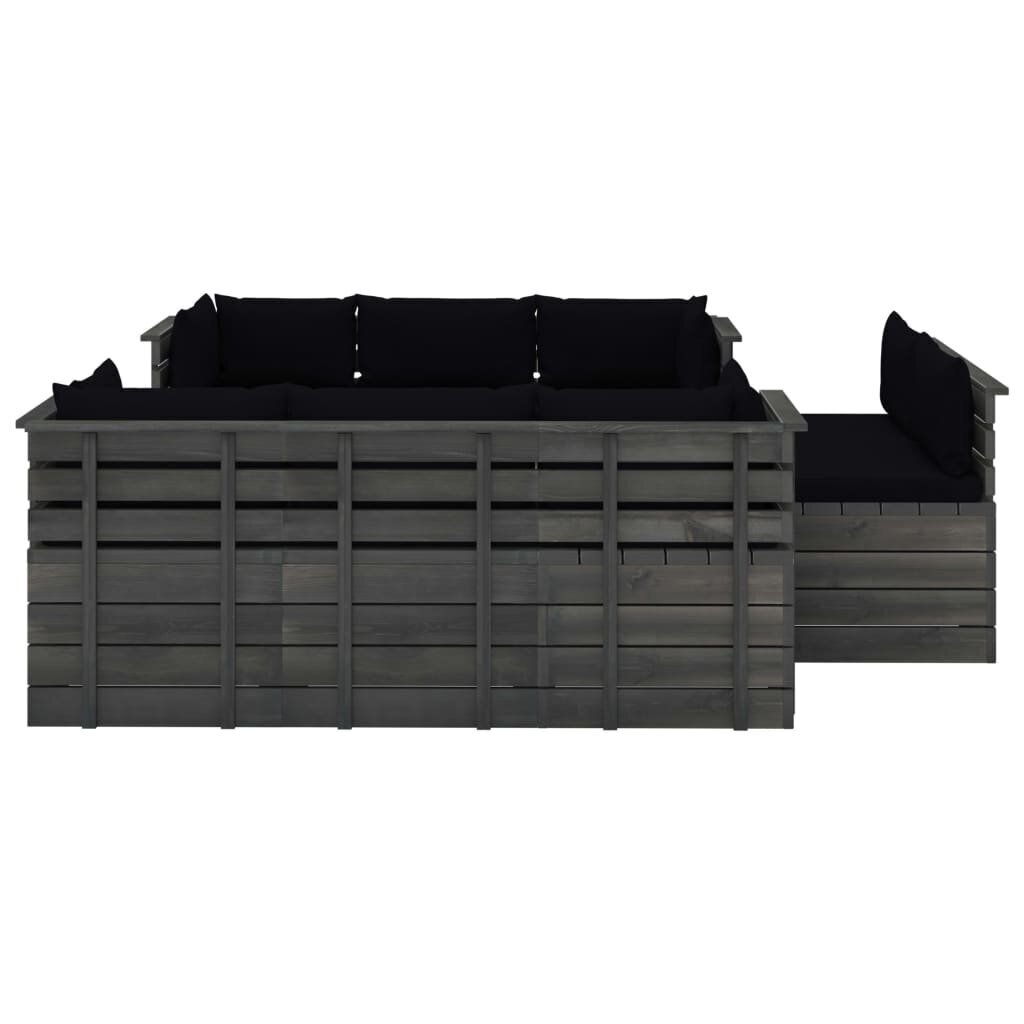 Lauko baldų komplektas iš palečių su pagalvėlėmis, 9 dalių, juodas Medžio masyvas