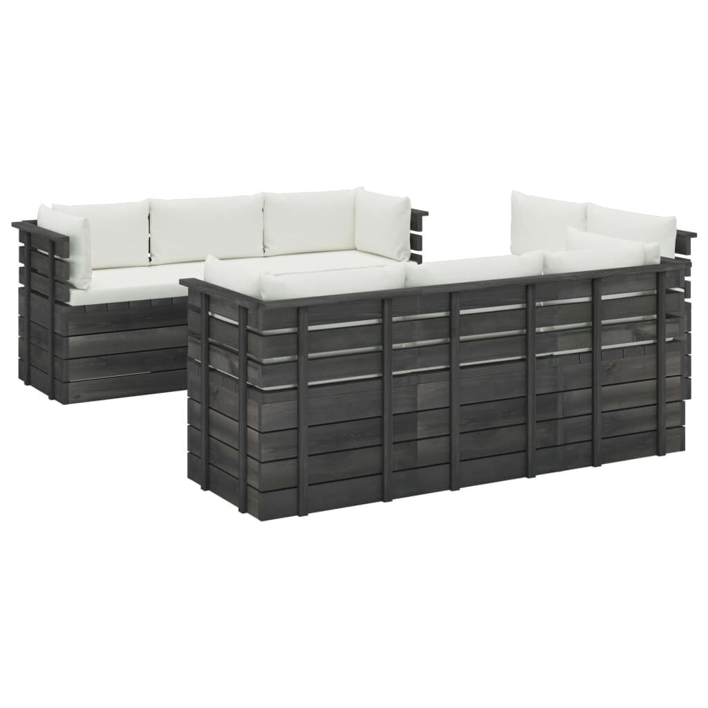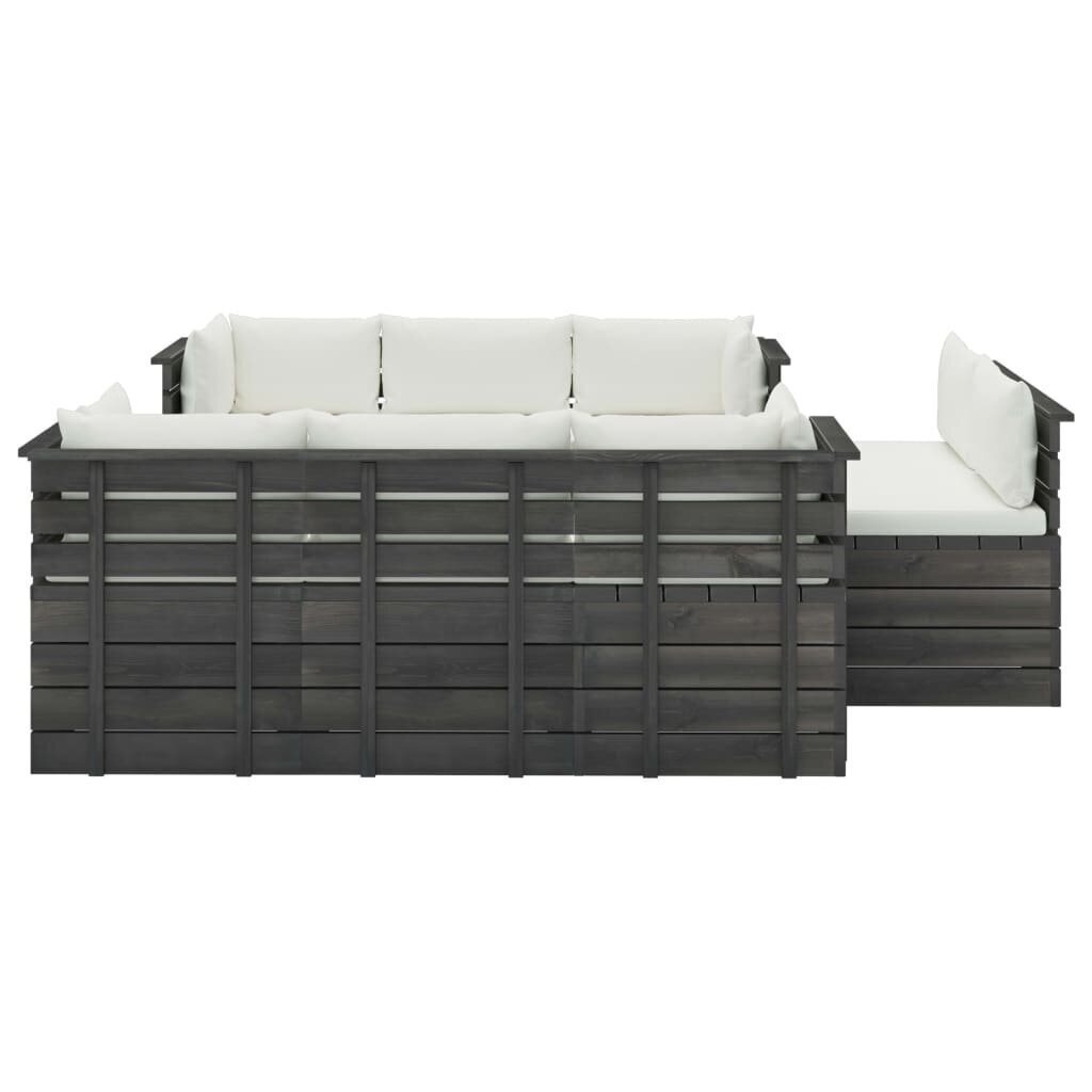 Visi šie modernių baldų bruožai leidžia teigti, jog šio stiliaus gaminiai yra paprasti ir tuo pačiu labai universalūs, todėl juos lengva pritaikyti bet kokio dydžio kambariuose. Sodo komplektas su pagalvėmis, 9 dalių, pilkas, pušies mediena patiks tiems, kurie nori sukurti minimalistinę, neperkrautą erdvę, išlaikant tvarkos ir gaivos įspūdį.