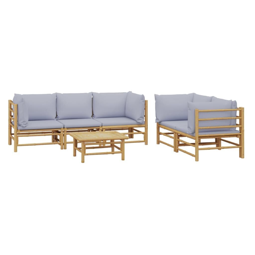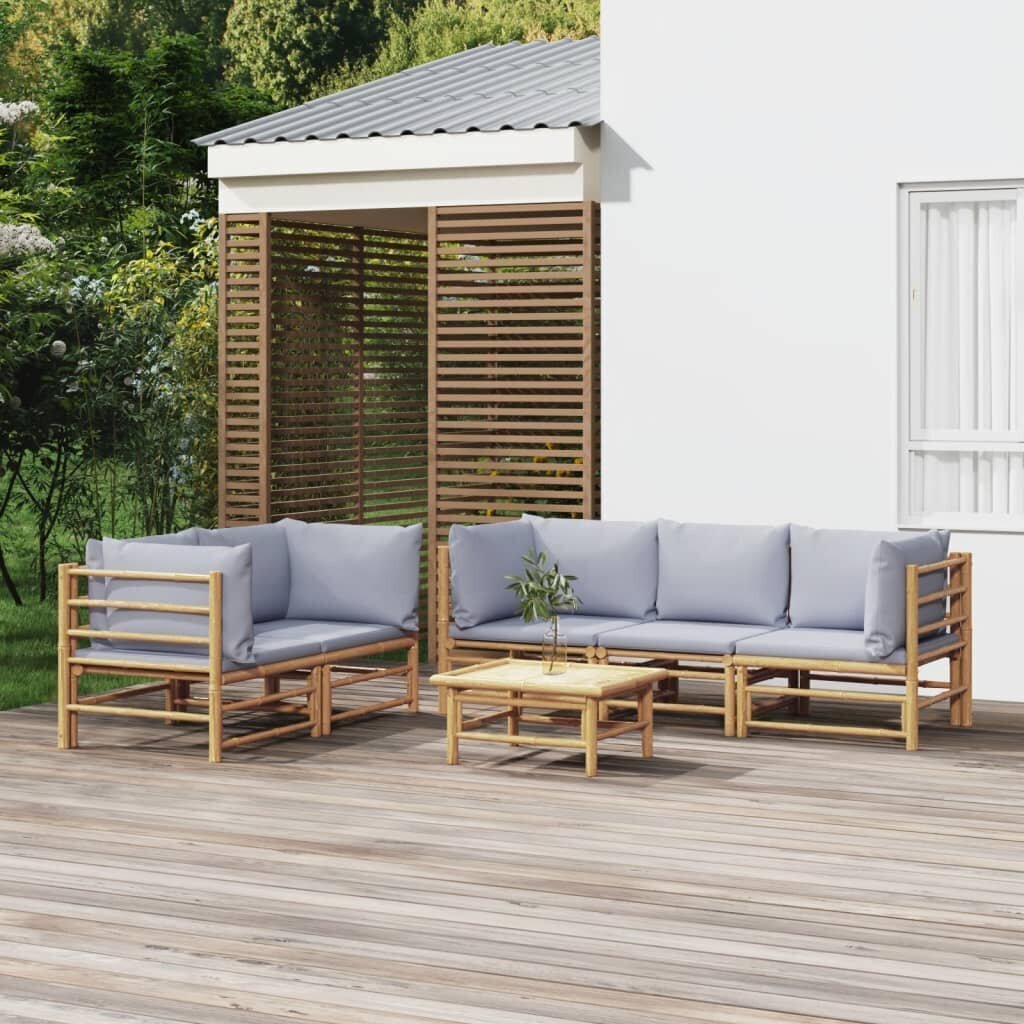 - Lauko sodo poilsio baldų komplektas iš bambuko: Šis elegantiškas komplektas iš bambuko yra patvarus, lankstus ir suteikia komfortą su minkštomis pagalvėlėmis bei funkcionaliu staliuku, leidžiant mėgautis kavos ar arbatos akimirkomis lauke.