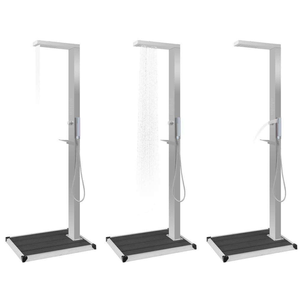 Mūsų universali dušo sistema pasižymi stilingu dizainu. Kartu su elegantišku dušo padėklu, ji taps puikia jūsų baseino zonos ir kitos lauko erdvės detale. Dušo sistema yra pagaminta iš patvaraus, šlifuoto nerūdijančio plieno bei pasižymi gražiu, lenktu dizainu. Ji turi lietaus bei krioklio srovės ir masažinę bei rankinę dušo galvutes, kurios gali būti lengvai pasirinktos rankenėlės pagalba. Pasinerkite į neabejotinai atpalaiduojantį maudymosi duše potyrį ir mėgaukitės moderniu šio gražaus dušo sistemos stiliumi! Mūsų dušo pagrindas užtikrina aukščiausio lygio higienos apsaugą, pasižyminčia patvarumu ir atsparumu korozijai. Sodo dušo padėklas lengvai valomas tiesiog drėgna šluoste. Be to, siekiant užtikrinti lengvą įrengimą, iš anksto išgręžtos tvirtinimui skirtos angos. Dušo sistemą lengva surinkti. Komplekte taip pat yra montavimui skirti priedai.