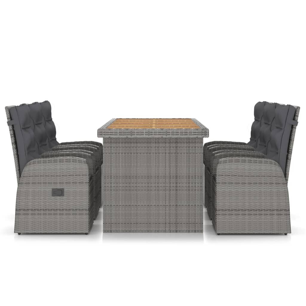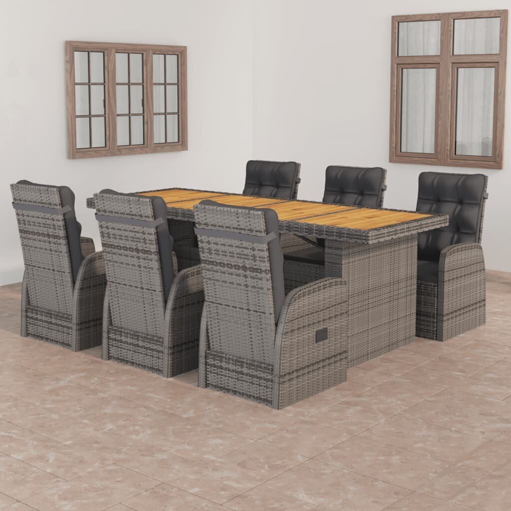 Visi šie modernių baldų bruožai leidžia teigti, jog šio stiliaus gaminiai yra paprasti ir tuo pačiu labai universalūs, todėl juos lengva pritaikyti bet kokio dydžio kambariuose. Sodo valgomojo komplektas, 7 dalių, pilkas patiks tiems, kurie nori sukurti minimalistinę, neperkrautą erdvę, išlaikant tvarkos ir gaivos įspūdį.