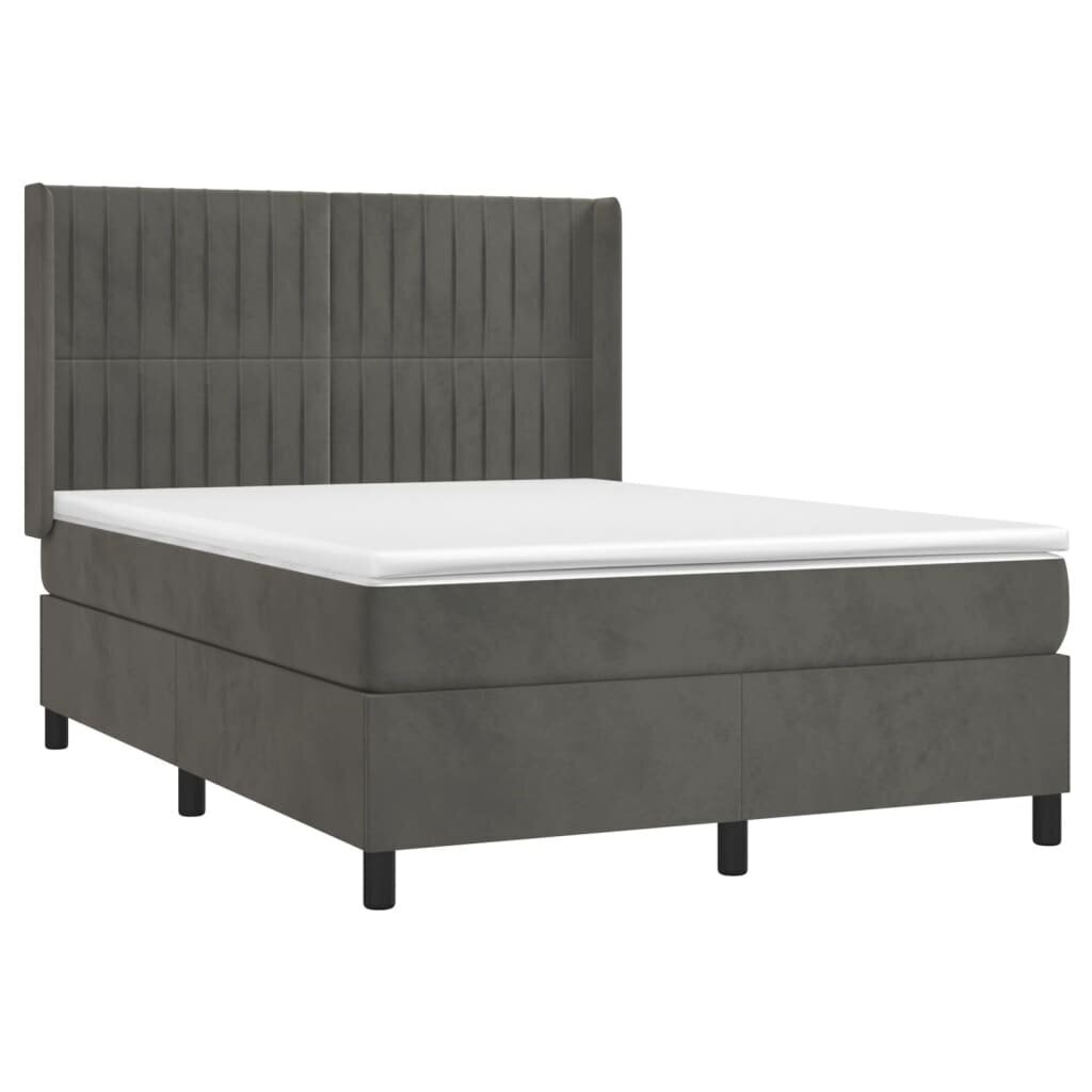 Visi šie modernių baldų bruožai leidžia teigti, jog šio stiliaus gaminiai yra paprasti ir tuo pačiu labai universalūs, todėl juos lengva pritaikyti bet kokio dydžio kambariuose. Lova su spyruoklėmis/čiužiniu/LED vidaXL, Aksomas, 140x200cm, pilka patiks tiems, kurie nori sukurti minimalistinę, neperkrautą erdvę, išlaikant tvarkos ir gaivos įspūdį.