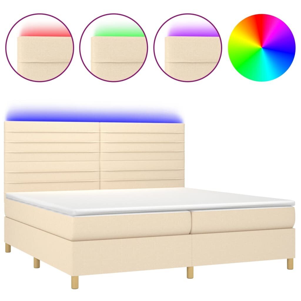 Visi šie modernių baldų bruožai leidžia teigti, jog šio stiliaus gaminiai yra paprasti ir tuo pačiu labai universalūs, todėl juos lengva pritaikyti bet kokio dydžio kambariuose. Lova su spyruoklėmis/čiužiniu/LED vidaXL, Audinys, 200×200 cm, kreminė spalva patiks tiems, kurie nori sukurti minimalistinę, neperkrautą erdvę, išlaikant tvarkos ir gaivos įspūdį.