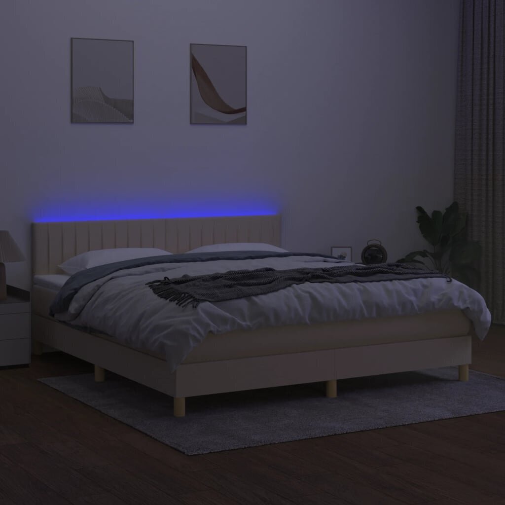Visi šie modernių baldų bruožai leidžia teigti, jog šio stiliaus gaminiai yra paprasti ir tuo pačiu labai universalūs, todėl juos lengva pritaikyti bet kokio dydžio kambariuose. Lova su spyruoklėmis/čiužiniu/LED vidaXL, Audinys, 180×200 cm, kreminė spalva patiks tiems, kurie nori sukurti minimalistinę, neperkrautą erdvę, išlaikant tvarkos ir gaivos įspūdį.