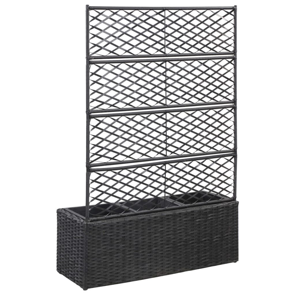 - Poliratano lovelis su treliažu ir išimamais vazonais: Šis lovelis, pagamintas iš poliratano, turi tris išimamais aukštais vazonus ir įmontuotą treliažą, suteikiantį žavesio lauko erdvei, puikiai tinka gėlių ir žaliųjų augalų auginimui.