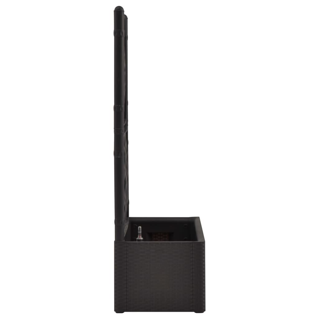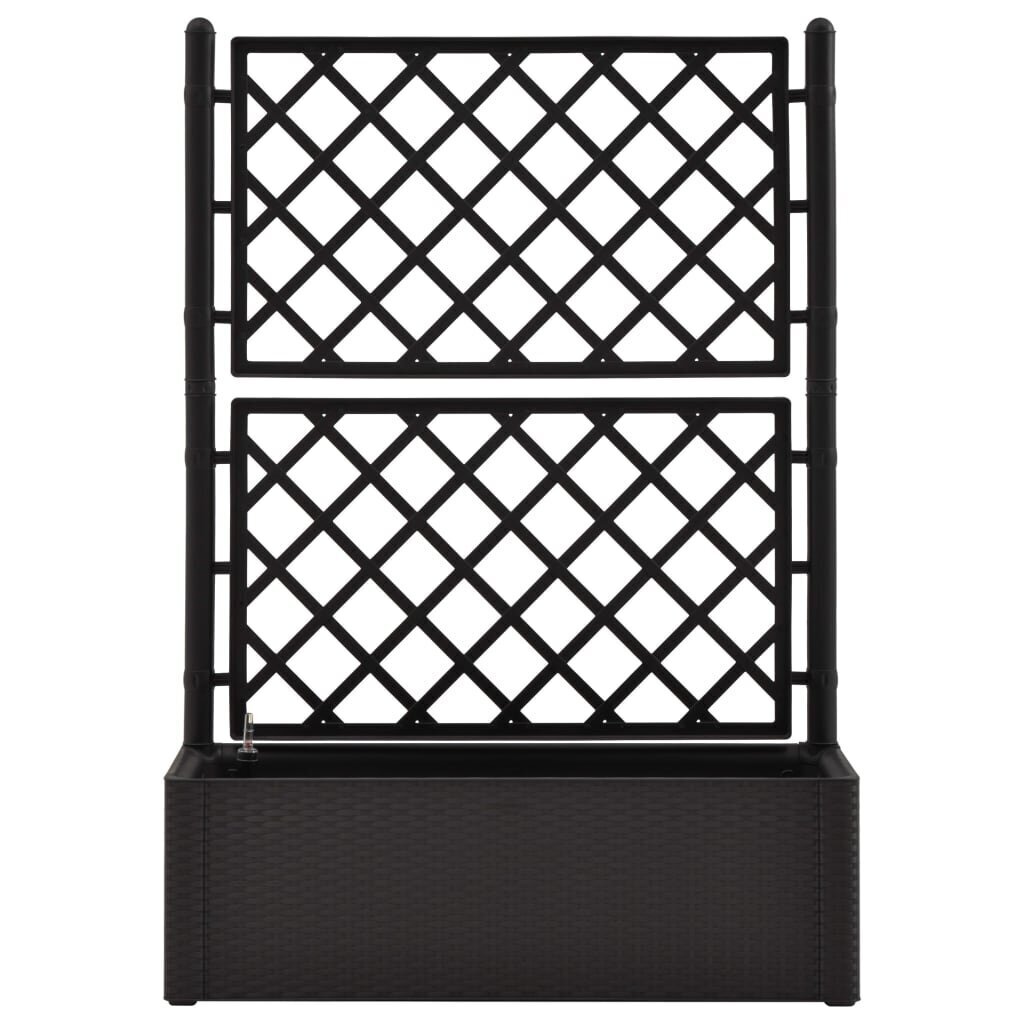 Su elegantišku, funkcionaliu ir unikaliu, savaiminio laistymo sistema pasižyminčiu aukštu loveliu sukurkite savo gėlėms žavingą foną! Šis lovelis su treliažu pasižymi didele dėže gėlėms, kurioje telpa daugybė žalių augalų ir gėlių. Įmontuotas treliažas užtikrina puikią atramą vijokliniams augalams, tokiems kaip žolelės, pomidorai, pupelės ir kt. Pagamintas iš tvirto, UV spinduliams, įvairioms oro sąlygoms ir šalčiui atsparaus plastiko, jis tinkamas tiek naudojimui viduje, tiek lauke. Dizainas primena tikro ratano konstrukciją. Medžiaga gali būti plaunama bei yra lengvai valoma. Be to, išleisdamas vandenį iš savo 90 l talpos vandens talpyklos, šis lovelis gali automatiškai palaistyti augalus, o siekiant užtikrinti, kad jie nebus perlaistyti, jis turi vandens išleidimui skirtas angas. Pridedamas lygio indikatorius.