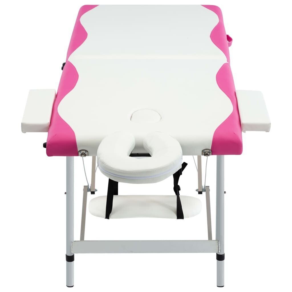 Sulankstomas masažinis stalas baltas rožinis su aliuminio rėmu