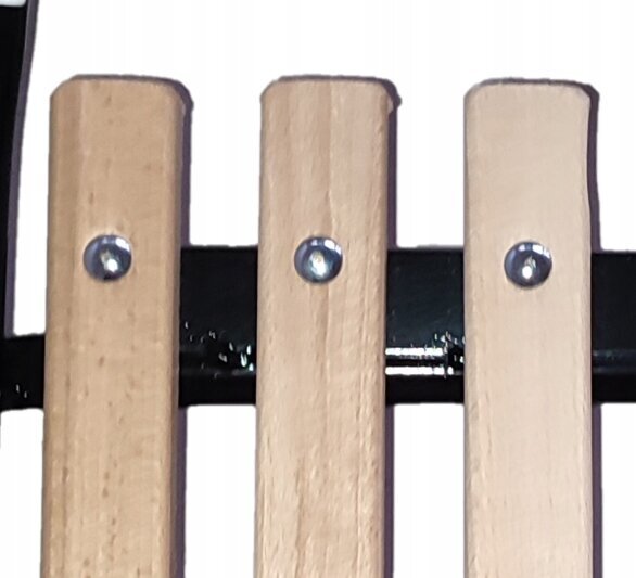 - Medžiaga: stiprus plieninis ovalus vamzdis, kurio sienelių storis yra 1,2 mm; buko mediena.