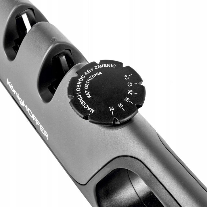 Konighoffer Fenix peilis ir žirklių galąstuvas padarys jūsų mėgstamus peilius aštrius ir paruoštus darbui. Dėl reguliuojamo galandimo kampo (nuo 14 iki 24 laipsnių) ir patogios rankenos galite greitai ir patogiai pagaląsti žirkles ar peilius. Pagaminta iš nerūdijančio plieno ir plastiko užtikrina gaminio ilgaamžiškumą. Galąstuvas turi neslidų pagrindą. Grubus lygis suteiks pjovimo briaunos tinkamą formą. Smulkiagrūdis laipsnis jį papildomai išlygins. Modelis gali būti naudojamas įvairių tipų virtuviniams peiliams. Produktą rekomenduoja Ewa Wachowicz. Būdama prekės ženklo Konighoffer ambasadorė, ji šiltai ir su šypsena rekomenduoja jį naudoti namuose. Kartu su juo gausite savo namų receptą. Tai vienas geriausių variantų šioje kategorijoje!