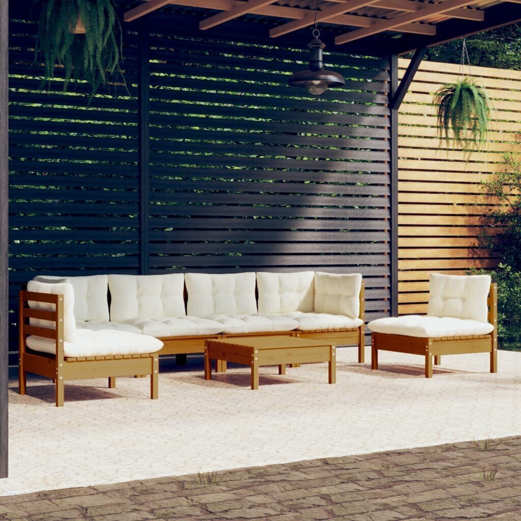 Šis sodo poilsio baldų komplektas bus puikiu pasirinkimu poilsiui, mėgavimuisi oru, norint nusnausti ar pokalbiams su savo šeima ir draugais. Kiemo poilsio baldų komplektas yra pagamintas iš pušies medienos masyvo, kuris užtikrina, kad jis yra tvirtas ir stabilus. Pagalvėlės suteikia papildomo komforto. Norėdami sukurti savo asmeninį sodo poilsio baldų komplektą, jį galite sujungti su kitomis modulinėmis dalimis! Pastaba: norėdami užtikrinti ilgesnį savo lauko baldų tarnavimo laiką, rekomenduojame juos reguliariai valyti ir nepalikti lauke be reikiamos apsaugos. Valymas: naudokite švelnaus muilo tirpalą. Laikymas: jei įmanoma, laikykite vėsioje, sausoje patalpoje. Jei prekė laikoma lauke, apsaugokite ją vandeniui nepralaidžiu uždangalu. Po lietaus ar sningant, nuo plokščių paviršių nuvalykite vandens ir sniego perteklių. Norėdami išvengti su drėgme susijusios žalos, užtikrinkite pakankamą oro cirkuliaciją.