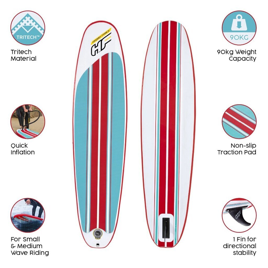 Komplekte: banglentė, rankinis siurblys, banglenčių dirželis, remonto komplektas, krepšys
