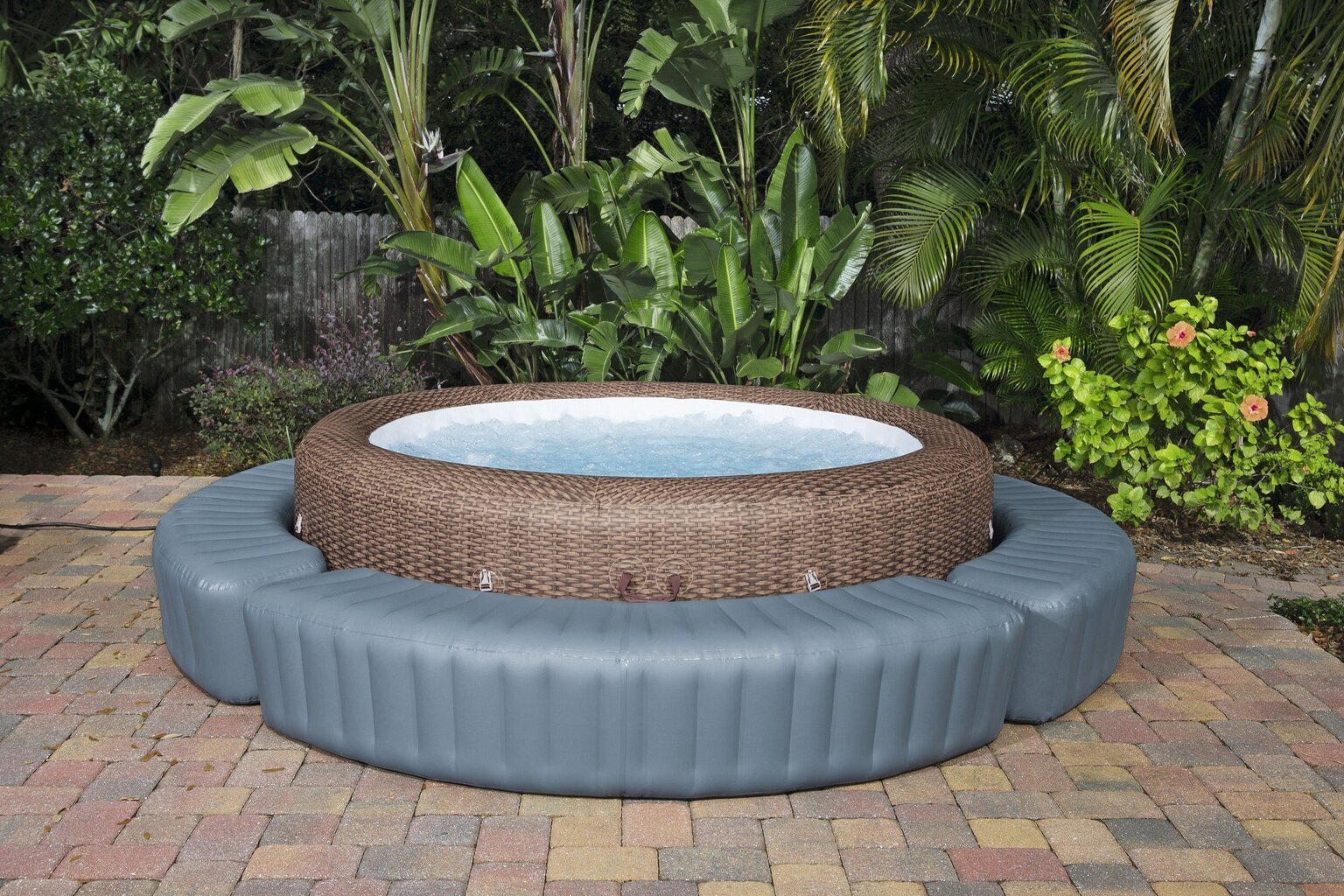 • Pripučiamas apvadas skirtas masažiniams baseinams: Šis pripučiamas apvadas, pagamintas iš „TriTechTM“ medžiagos, leidžia saugiai ir patogiai apsupti apvalius masažinius baseinus, suteikdamas galimybę sėdėti arba gulėti aplink juos.