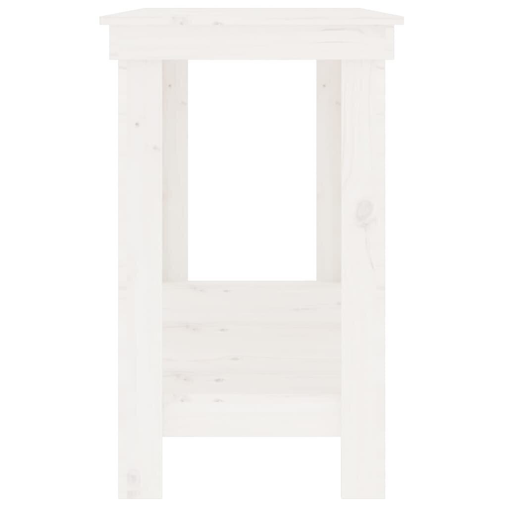 - Pušies medienos darbastalis su lentynomis: Šis baltas darbo stalas iš pušies medienos matmenų 180x50x80 cm pasižymi tvirtumu, tinka tvarkingai laikyti įrankius ir turi išskirtinę, kaimišką išvaizdą.