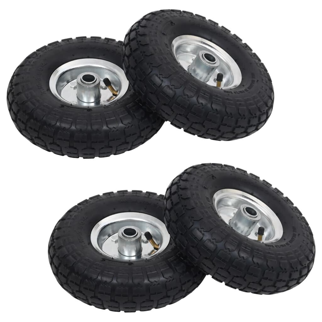 Šie pradūrimams atsparūs krovinių vežimėlio ratai puikiai tinka naudoti sunkiasvorių krovinių gabenimui su savo krovinių vežimėliais, rankiniais vežimėliais, vežimėliais, vežimais, karučiais ir kt. ant lygios ar nelygios žemės. Ratlankiai yra pagaminti iš tvirto metalo. Atsarginiai vežimėlio ratai yra universalaus dydžio ir gali būti lengvai sumontuoti ant jūsų krovinių vežimėlio, vežimėlio ir kt. Į pristatymą įeina 4 ratai.