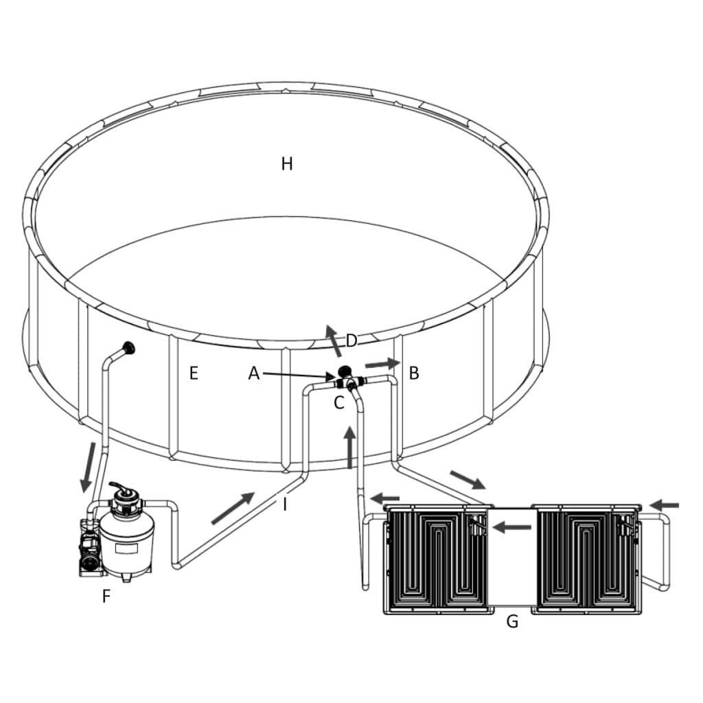Su šiuo aplinkai draugišku saulės energijos pagalba veikiančiu baseino šildytuvu prailginkite plaukiojimo sezoną! Baseino šildymo plokštė tinka antžeminiams baseinams ir gali būti naudojama su filtravimo sistema. Šildymo sistema yra pagaminta iš aukštos kokybės medžiagų, kurios yra patvarios atlaikyti nuolatinį saulės poveikį ir lauko sąlygas. Kad ji kaip įmanoma daugiau sukauptų saulės šviesos, taip užtikrinant didžiausią šildymo efektyvumą, reguliuojama atraminė kojelė laiko plokštę 40°-60° kampu. Ji taip pat užtikrina, kad plokštę galėsite paprastai pastatyti norimoje vietoje.