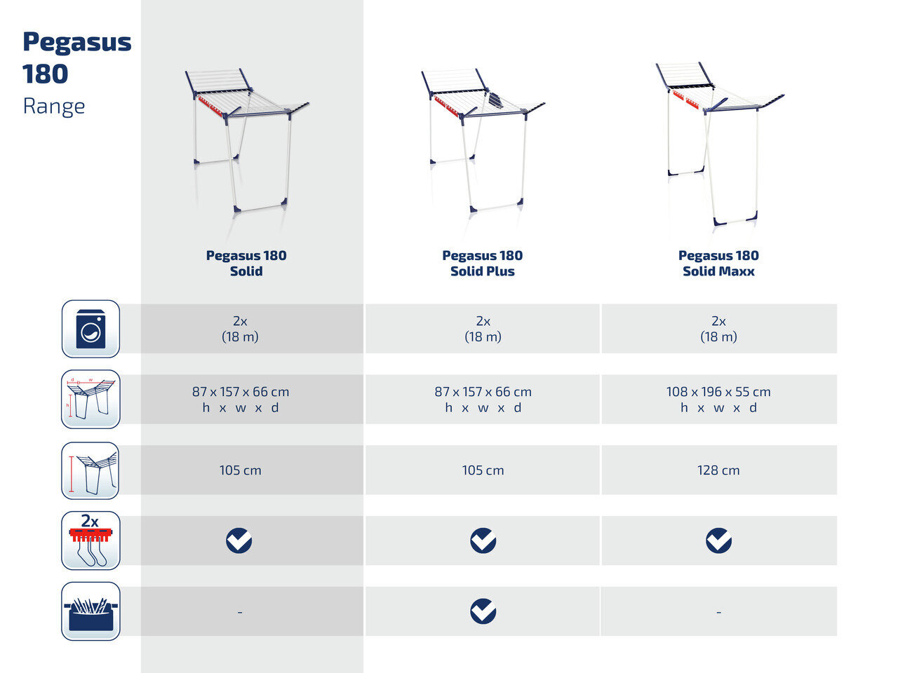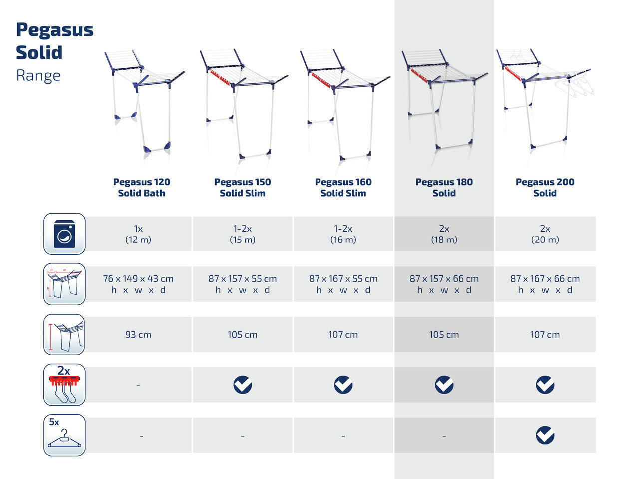 Leifheit Pegasus 180 Solid skalbinių džiovyklė yra tvirta ir praktiška, su 18 metrų ilgio virvėmis, kompaktišku dizainu, pagaminta iš aukščiausios kokybės plastiko ir metalo Europoje, ir gali būti lengvai sulenkta, kai nėra naudojama.