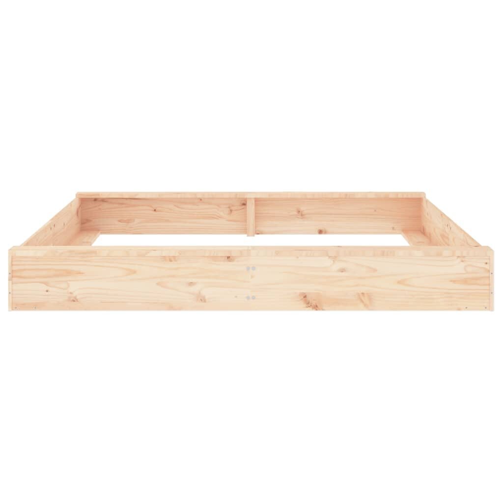 Medinė smėlio dėžė, pagaminta iš pušies medienos masyvo, pasižymi tvirtu ir stabiliu konstrukcija su tiesiais raštais ir iškilimais, suteikiančiais išskirtinę kaimišką išvaizdą.