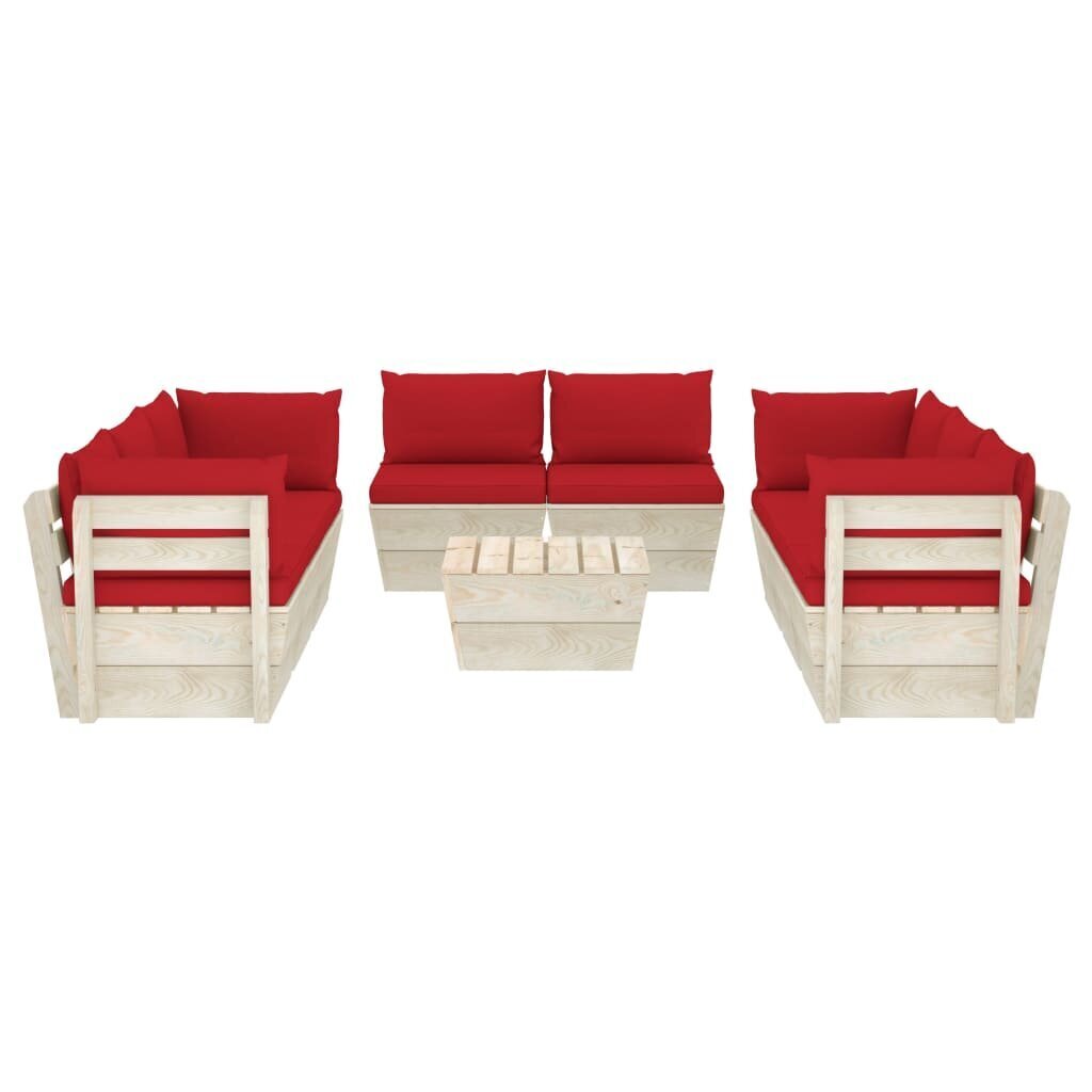 Sodo baldų komplektas iš palečių su pagalvėlėmis, 9 dalių, raudonas Medžio masyvas