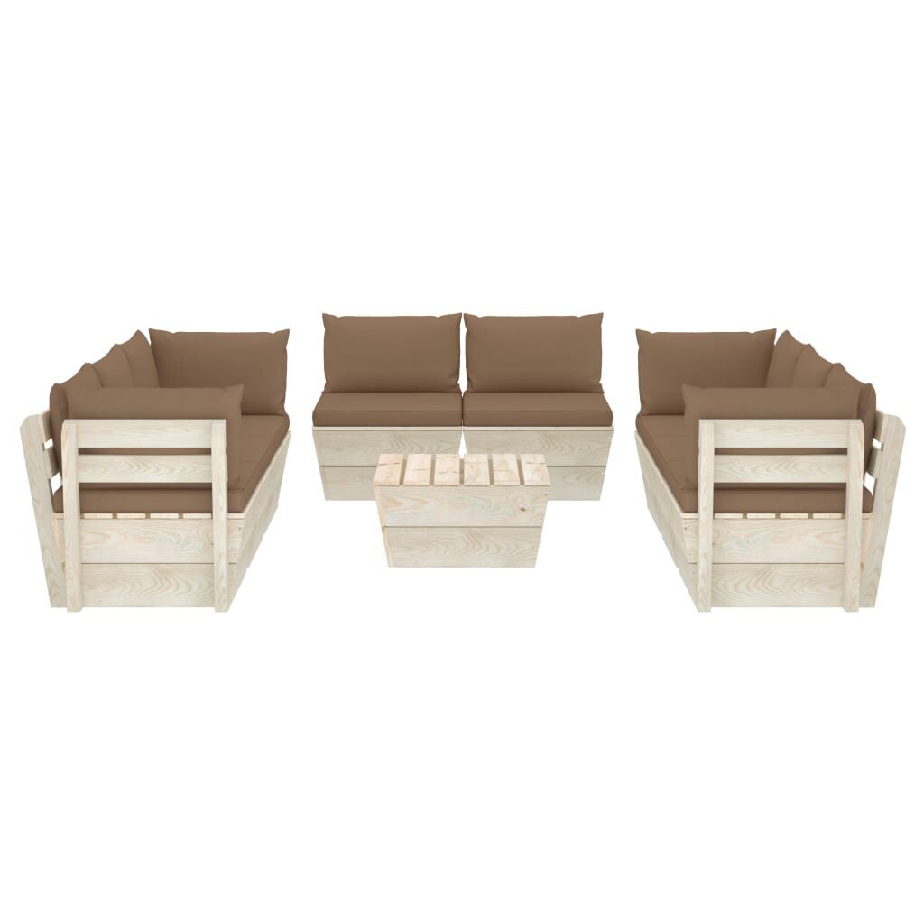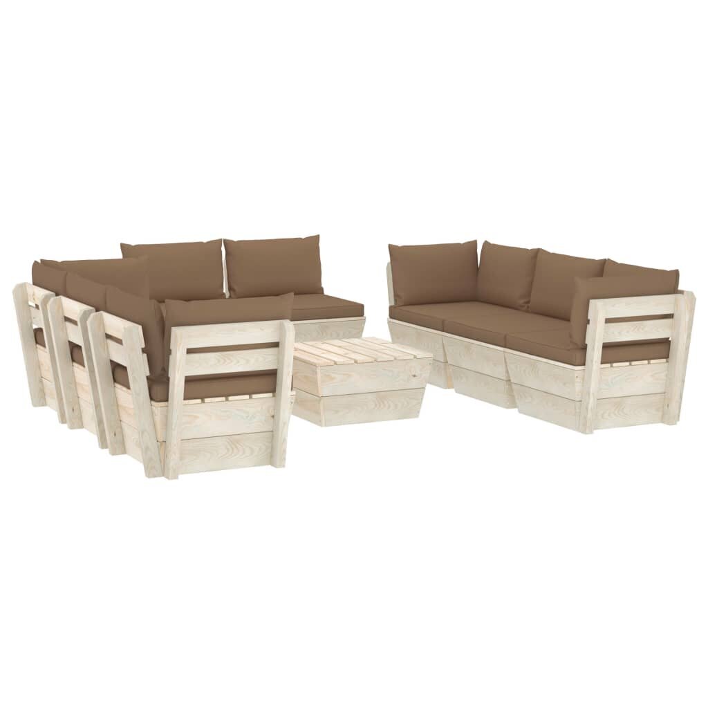 Sodo baldų komplektas iš palečių su pagalvėlėmis, 9 dalių, rudas