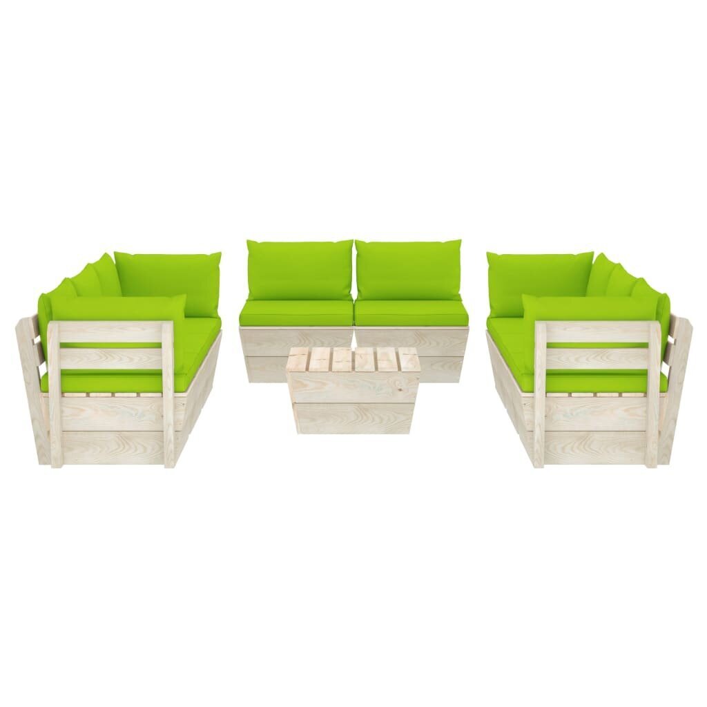 Galima teigti, jog Sodo baldų komplektas iš palečių su pagalvėlėmis, 9 dalių, žalias – nesenstanti klasika, ilgus metus neapleidžianti populiariausių tendencijų sąrašo. Medienos masyvas ypač populiarus šiais laikais, kuomet madingi gamtos motyvai, natūralumas ir ekologiškumas – visas šias savybes turi ir mediniai baldai.