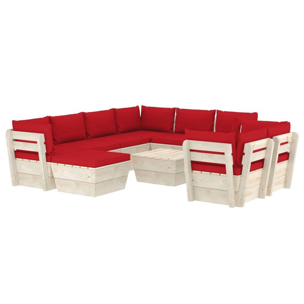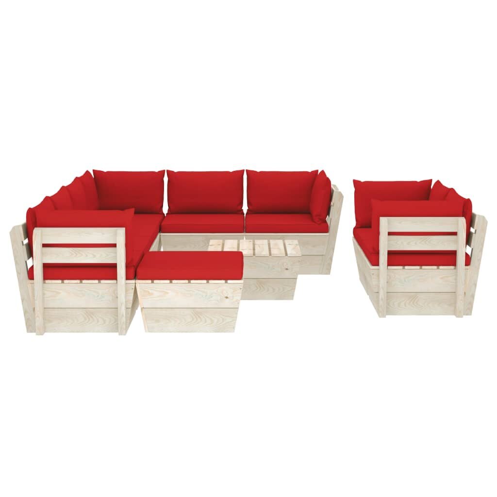 Sodo baldų komplektas iš palečių su pagalvėmis, 10 dalių, raudonas Medžio masyvas