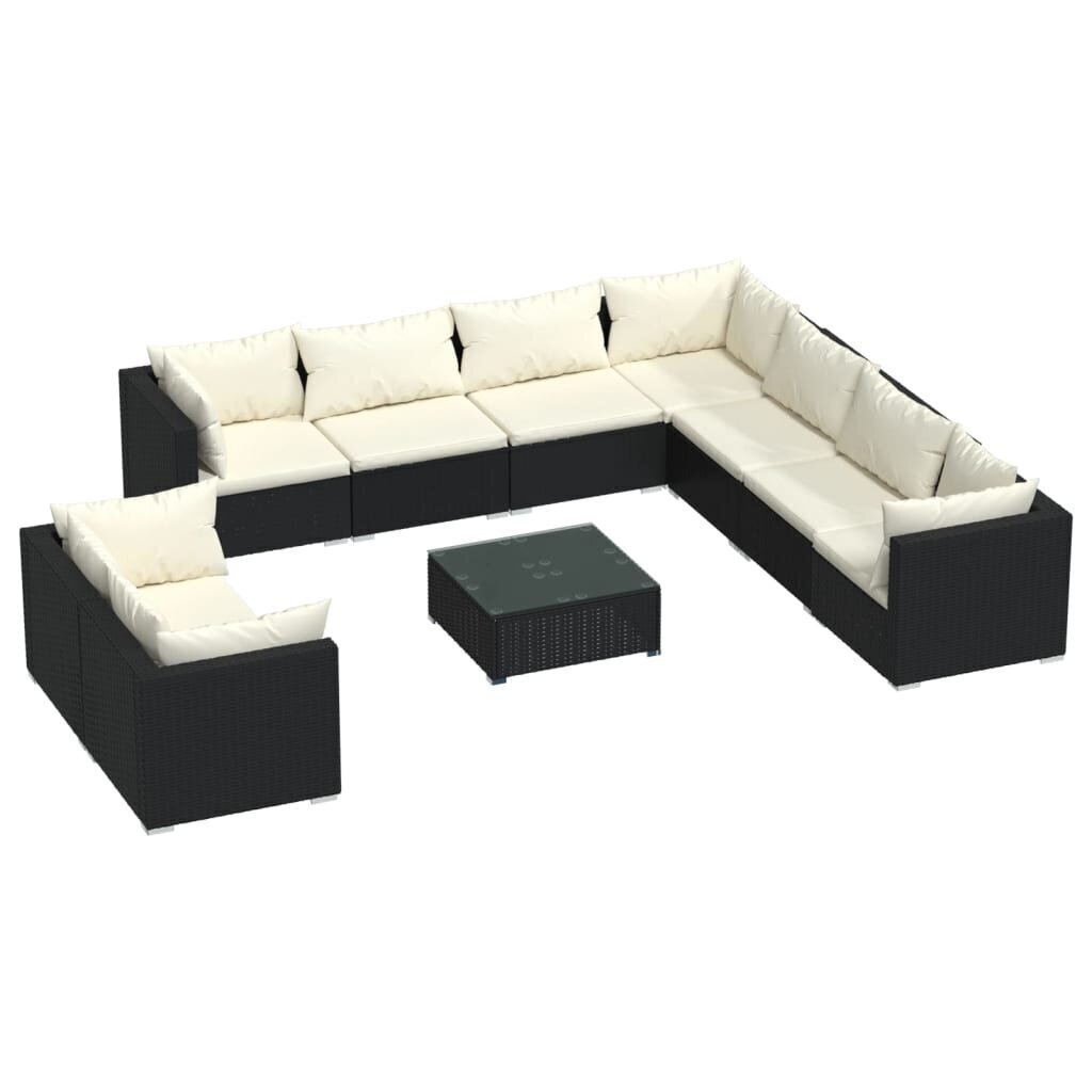 Sodo baldų komplektas, su pagalvėlėmis, 10 dalių, juodas