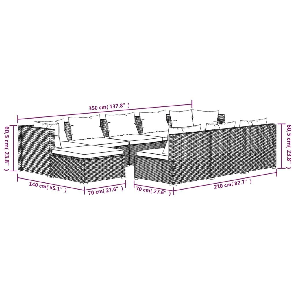 Sodo baldų komplektas 10 dalių su pagalvėlėmis juodas