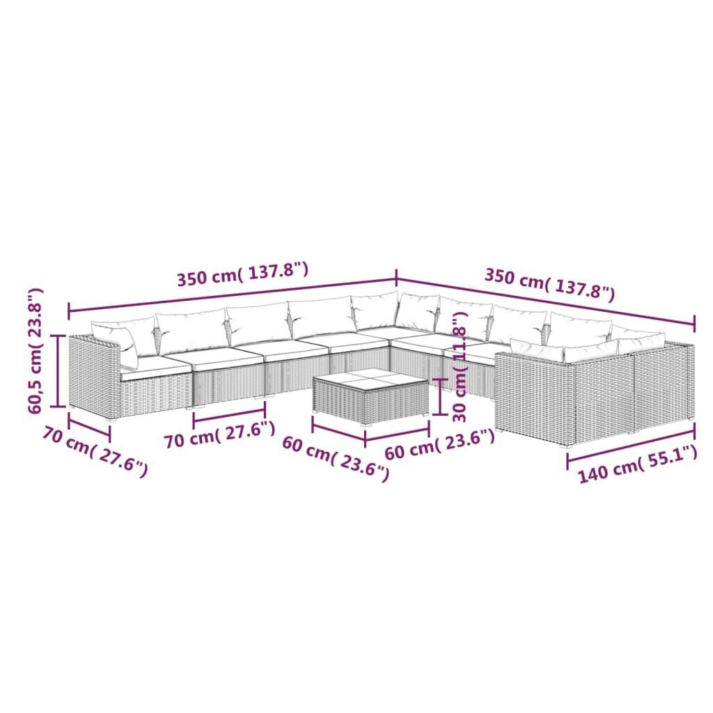 Sodo baldų komplektas, su pagalvėlėmis, 11 dalių, juodas Sintetinė vytelė