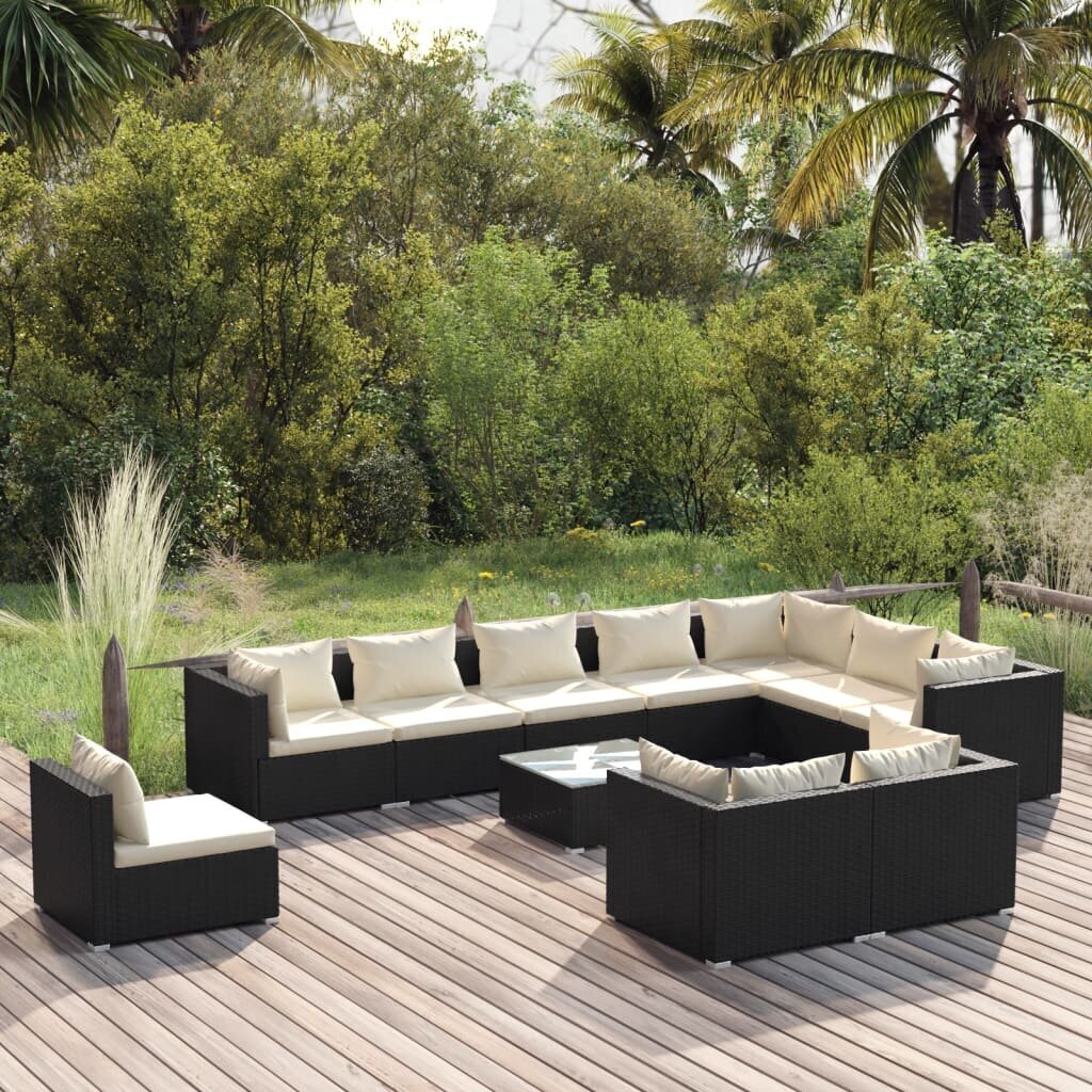Sodo baldų komplektas, su pagalvėlėmis, 11 dalių, juodas